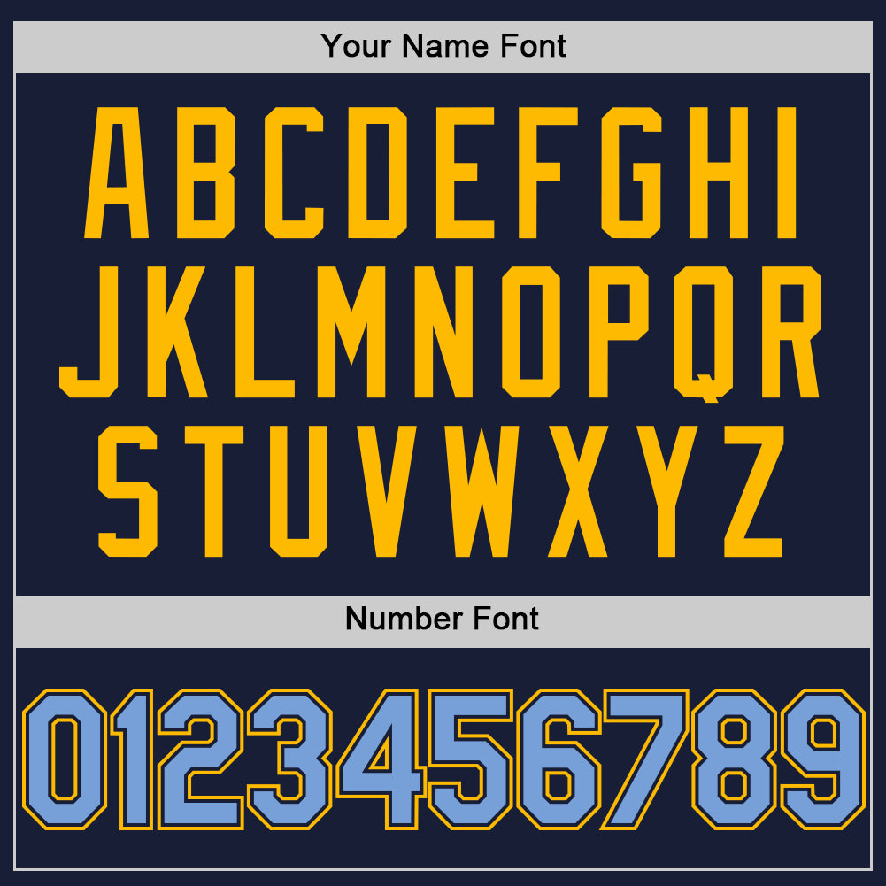Custom Navy Light Blue-Gold Bomber Full-Snap Varsity Letterman Two Tone Hoodie Jacket