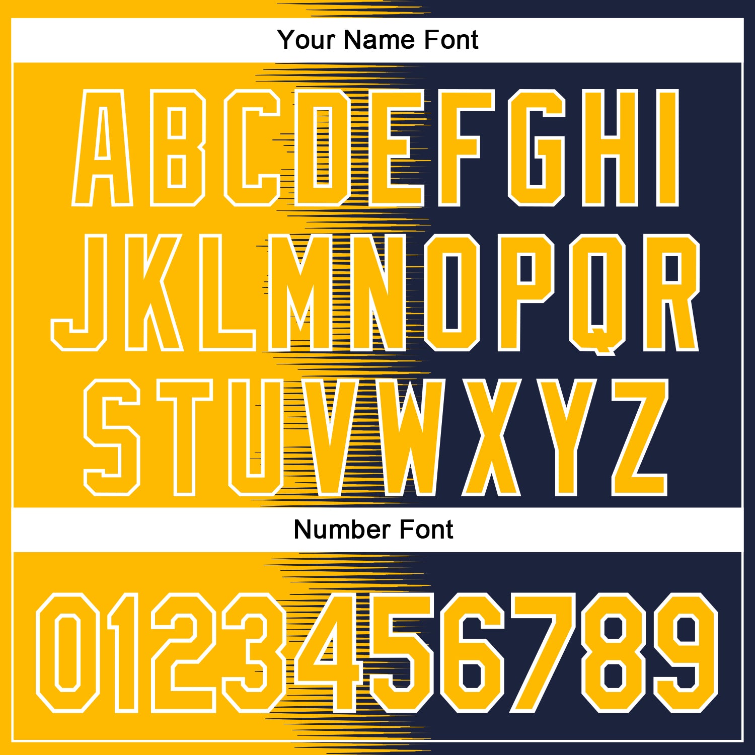 Custom Gold Navy-White Gradient Line Bomber Full-Snap Varsity Letterman Hoodie Jacket