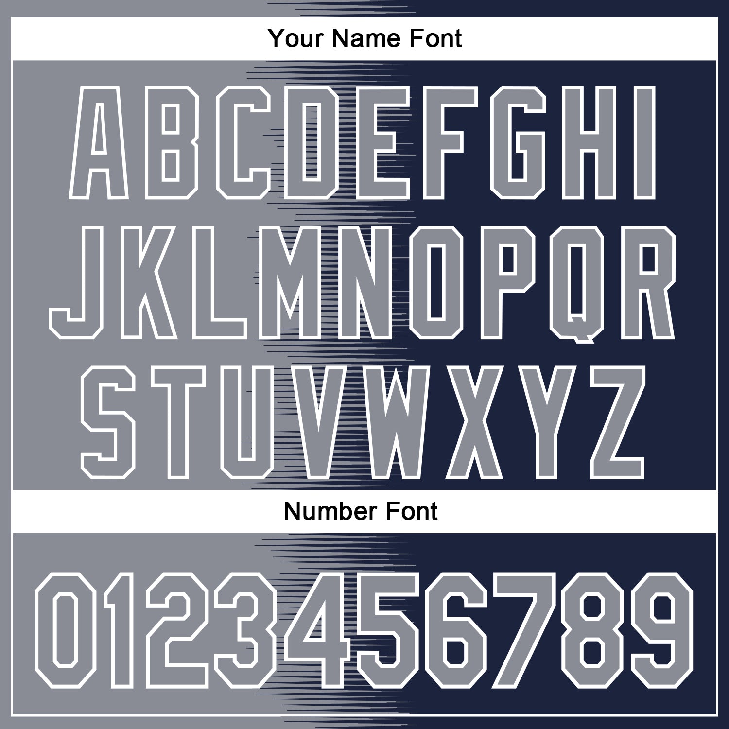 Custom Gray Navy-White Gradient Line Bomber Full-Snap Varsity Letterman Hoodie Jacket