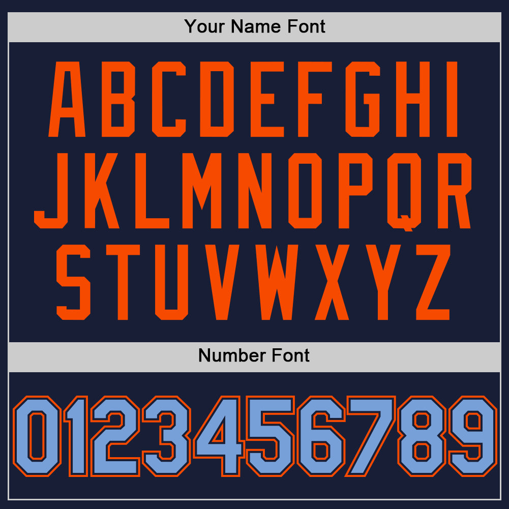 Custom Navy Light Blue-Orange Bomber Full-Snap Varsity Letterman Two Tone Hoodie Jacket