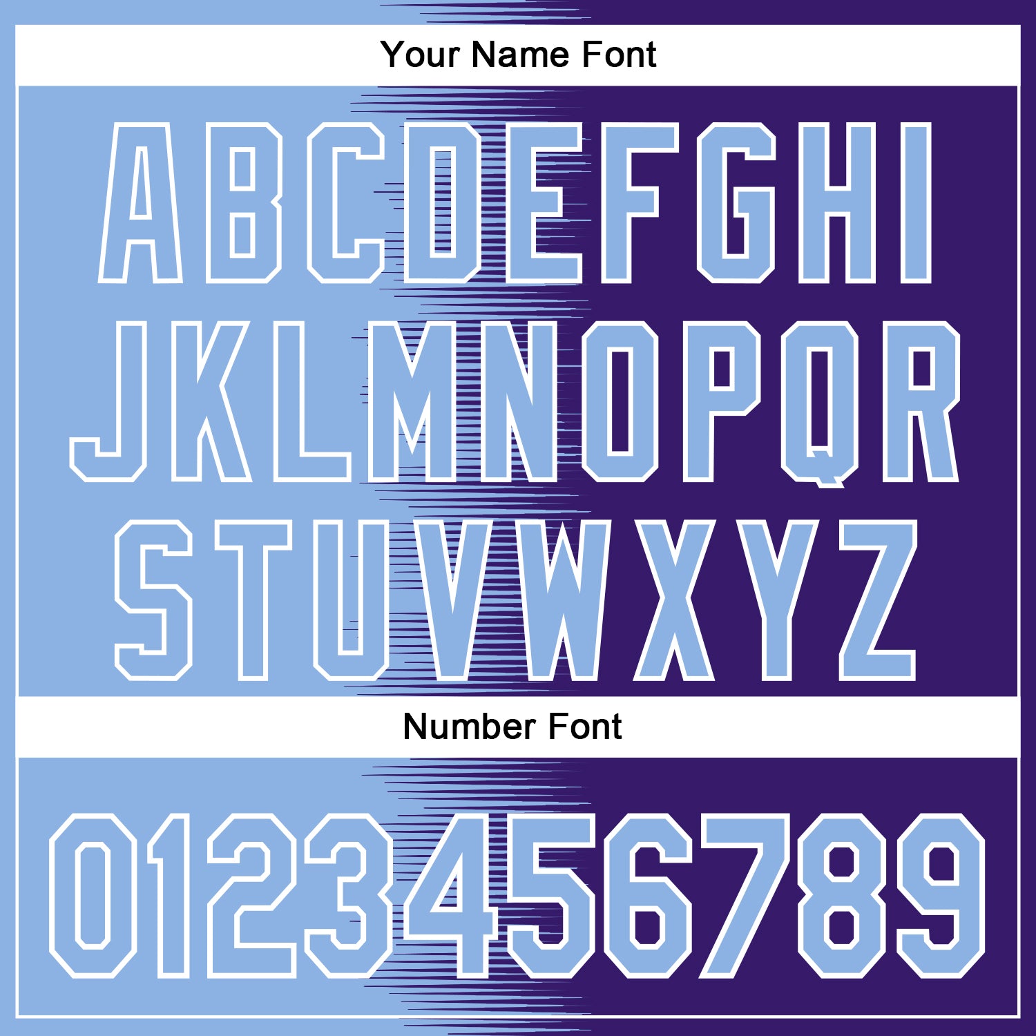 Custom Light Blue Purple-White Gradient Line Bomber Full-Snap Varsity Letterman Hoodie Jacket