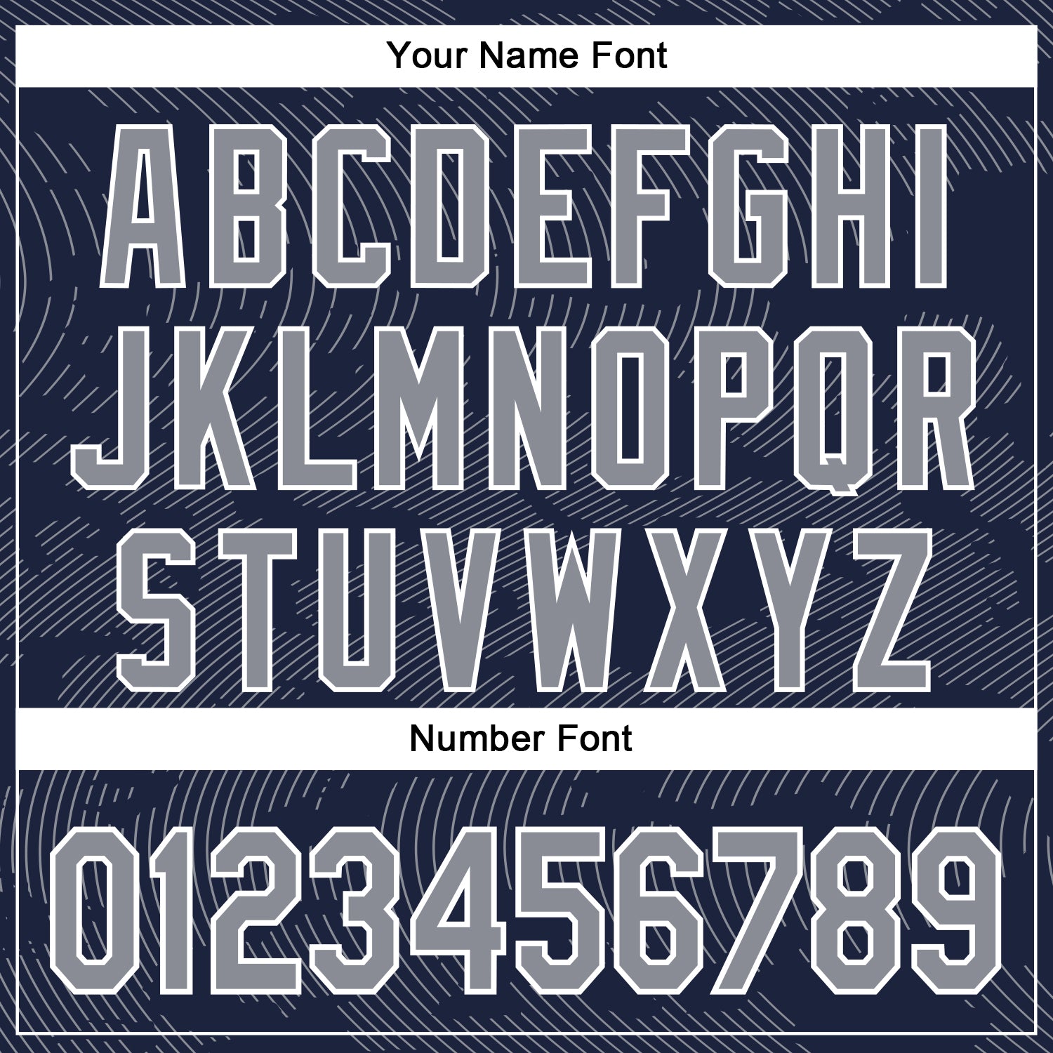 Custom Navy Gray-White Curve Lines 3D Pattern Design Bomber Full-Snap Varsity Letterman Hoodie Jacket