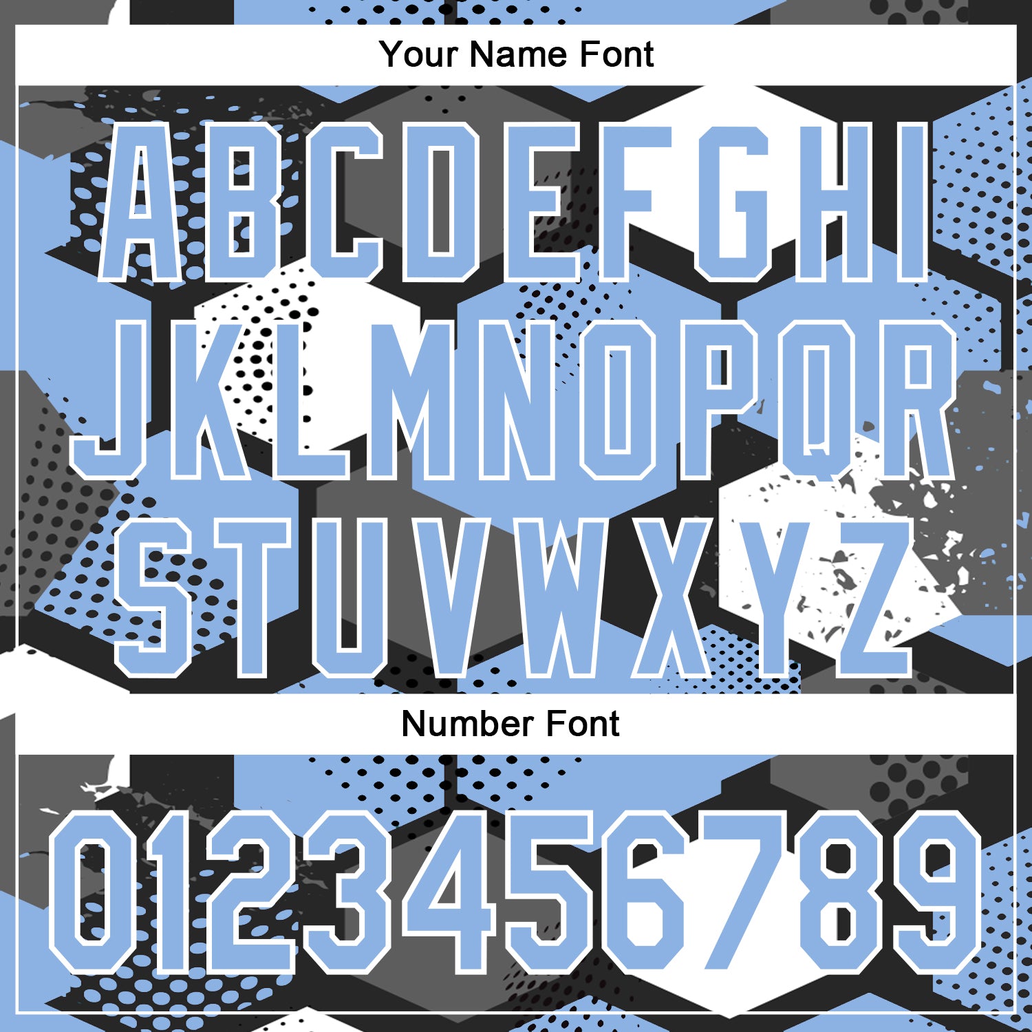 Custom Black Light Blue-White Geometric Shape 3D Pattern Design Bomber Full-Snap Varsity Letterman Hoodie Jacket