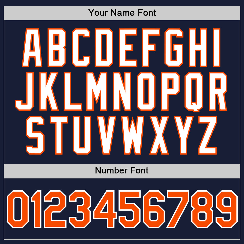 Custom Navy Orange-White Bomber Full-Snap Varsity Letterman Two Tone Hoodie Jacket