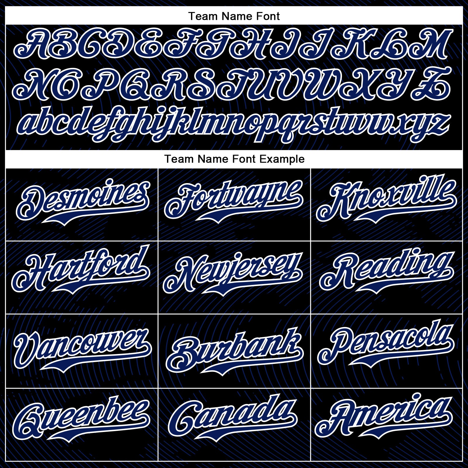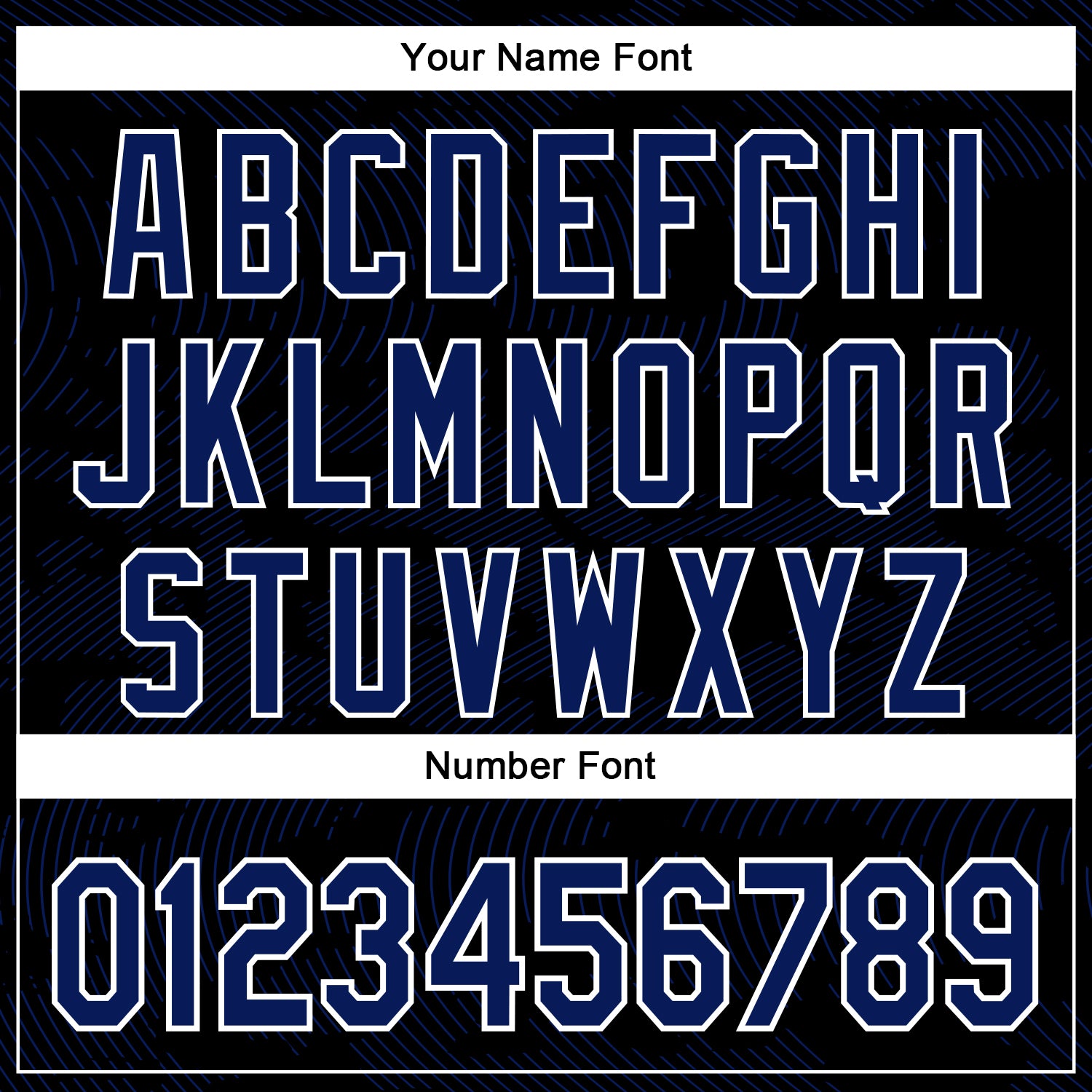 Custom Black Royal-White Curve Lines 3D Pattern Design Bomber Full-Snap Varsity Letterman Hoodie Jacket
