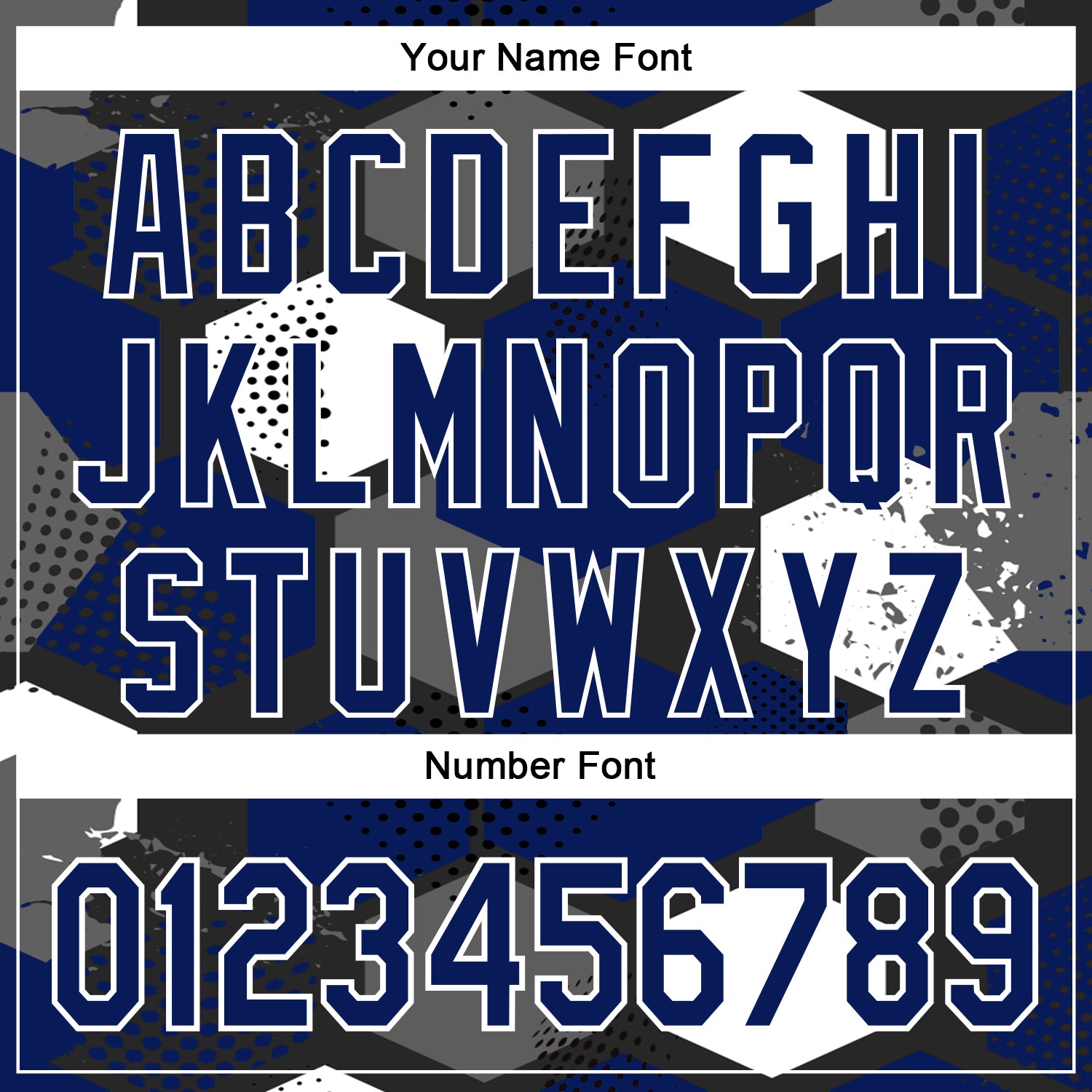 Custom Black Royal-White Geometric Shape 3D Pattern Design Bomber Full-Snap Varsity Letterman Hoodie Jacket