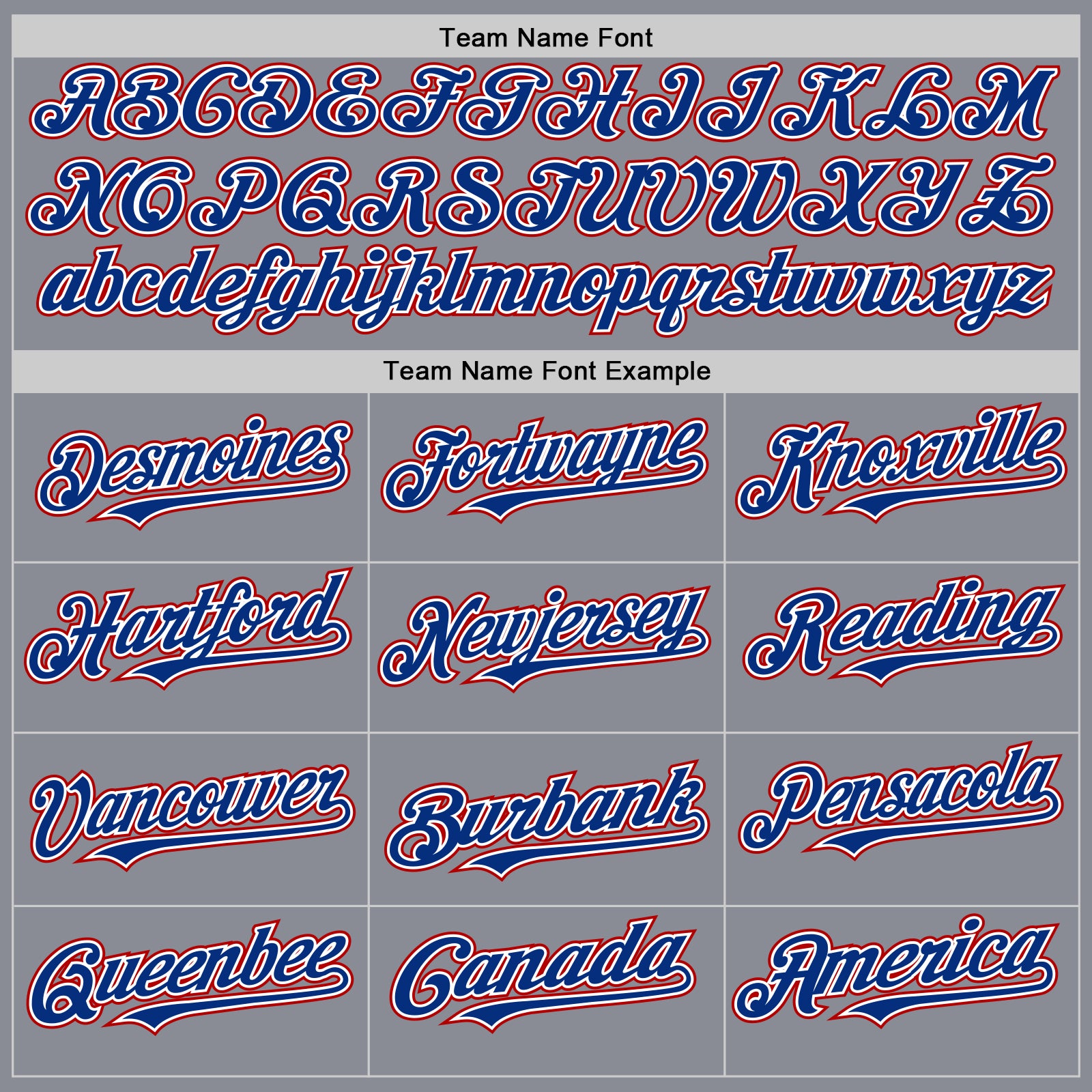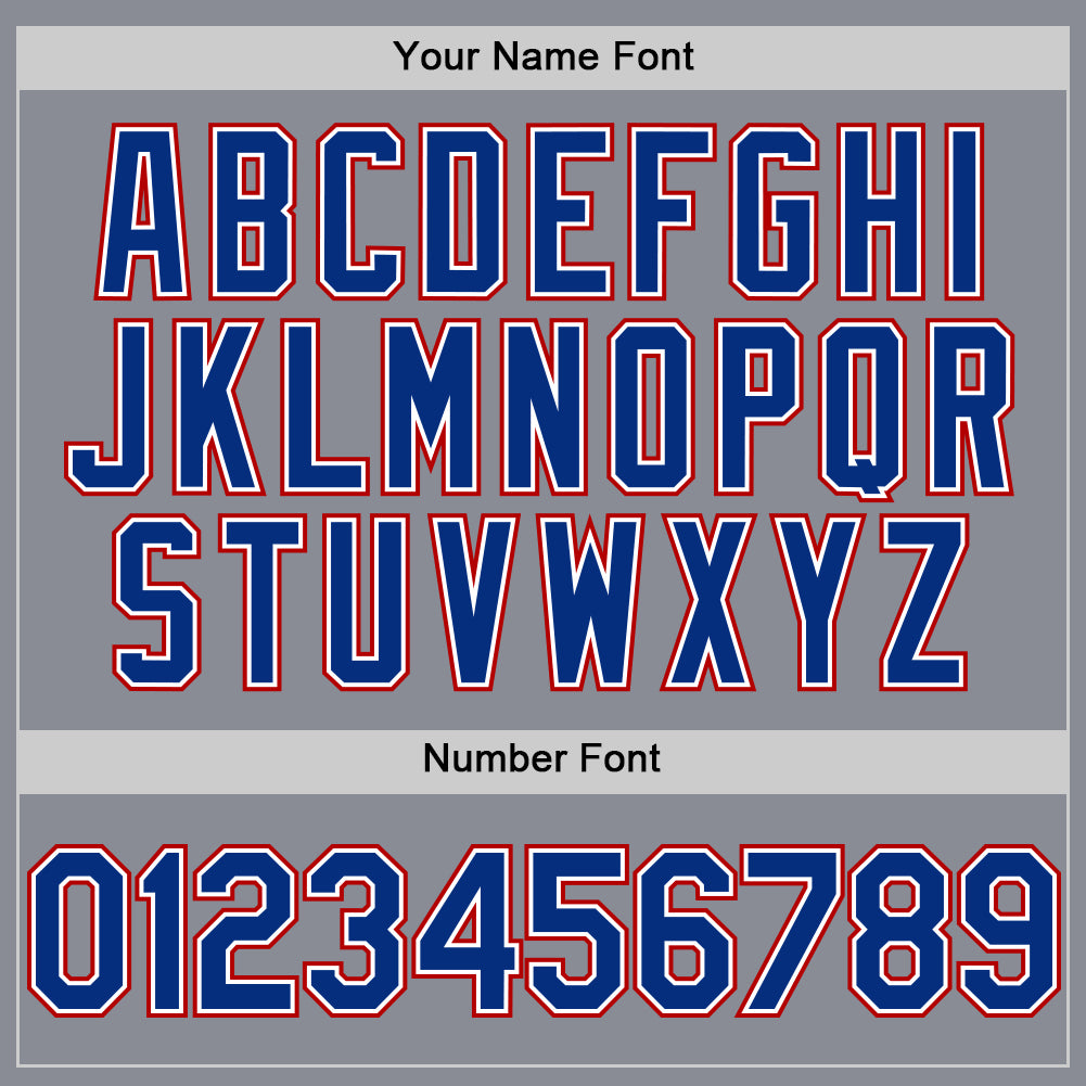 Custom Gray Royal-Red Bomber Full-Snap Varsity Letterman Hoodie Jacket