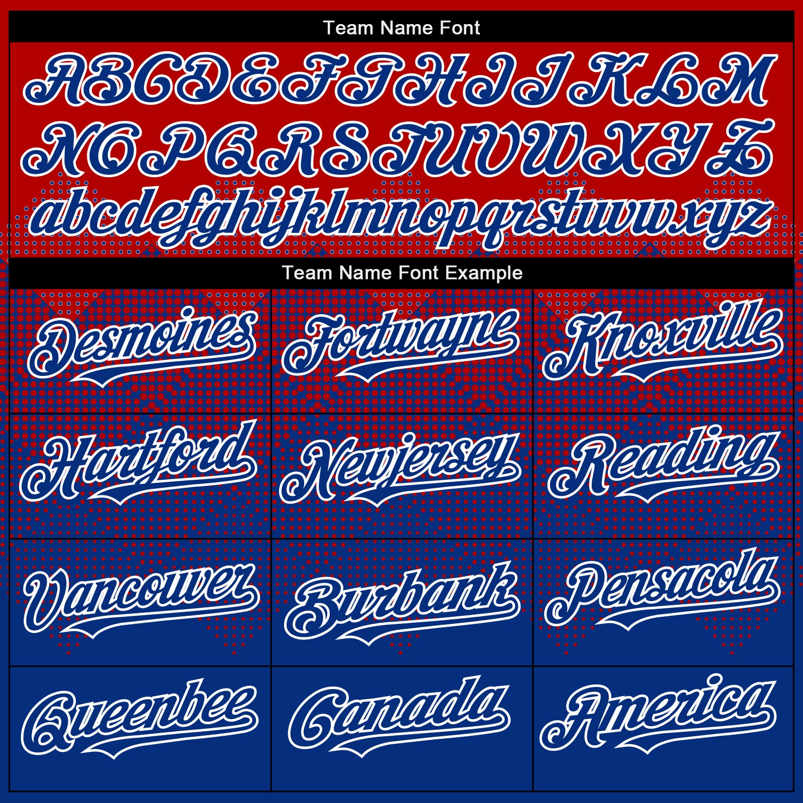 Custom Red Royal-White Gradient Square Shape 3D Pattern Design Bomber Full-Snap Varsity Letterman Hoodie Jacket