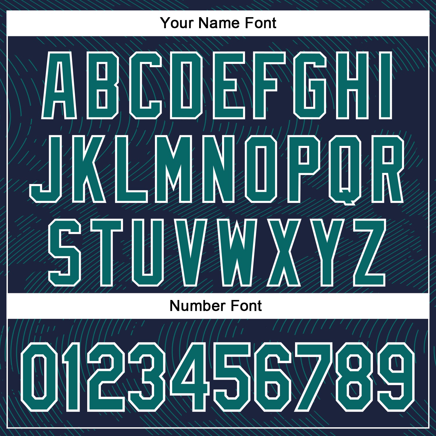 Custom Navy Teal-White Curve Lines 3D Pattern Design Bomber Full-Snap Varsity Letterman Hoodie Jacket