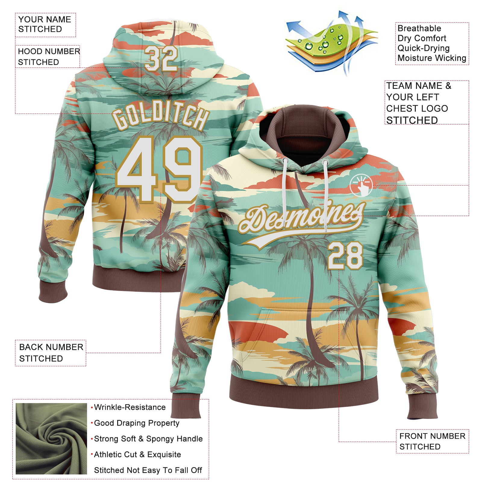 Custom Stitched Green White Brown-Old Gold 3D Cartoon Hawaii Palm Trees Sports Pullover Sweatshirt Hoodie