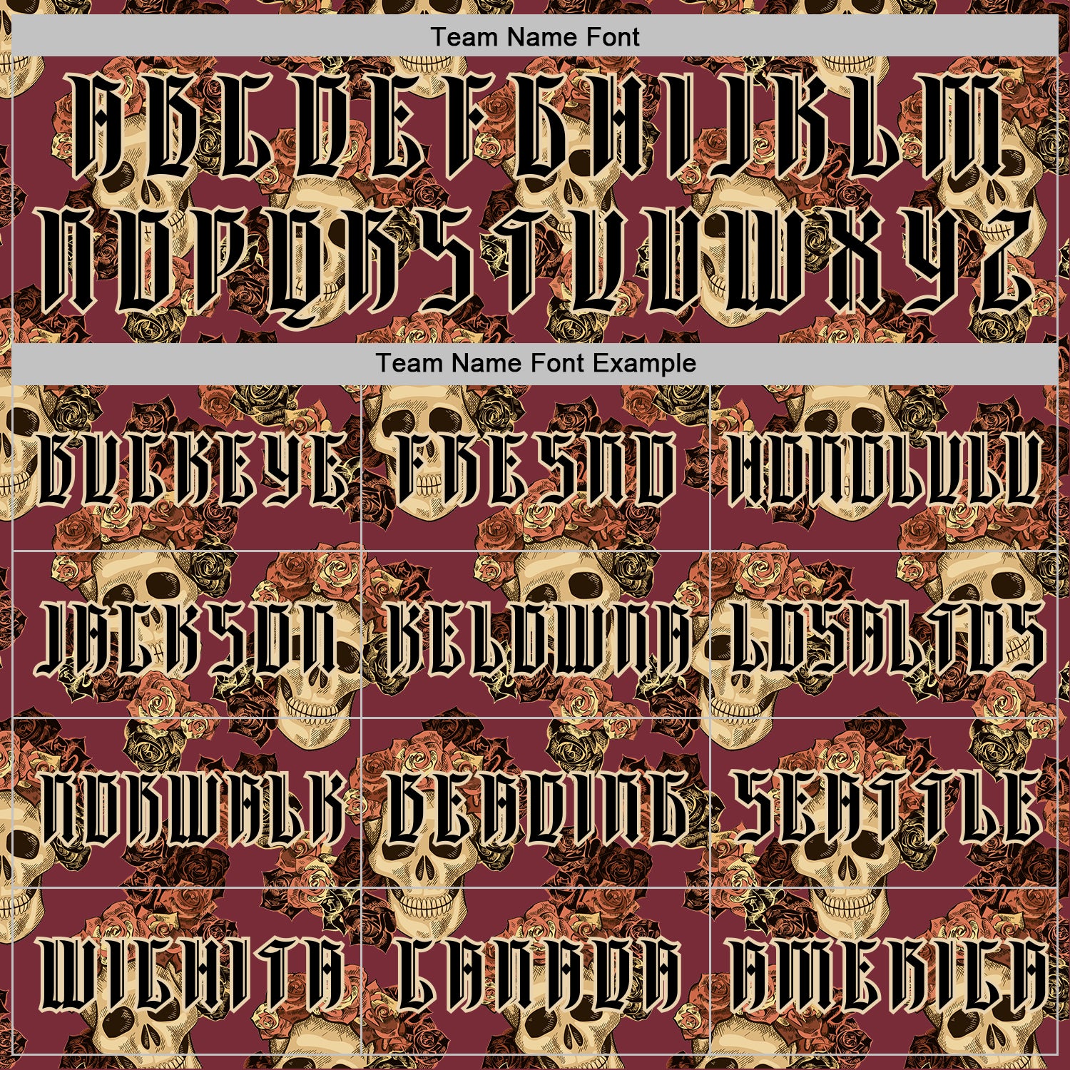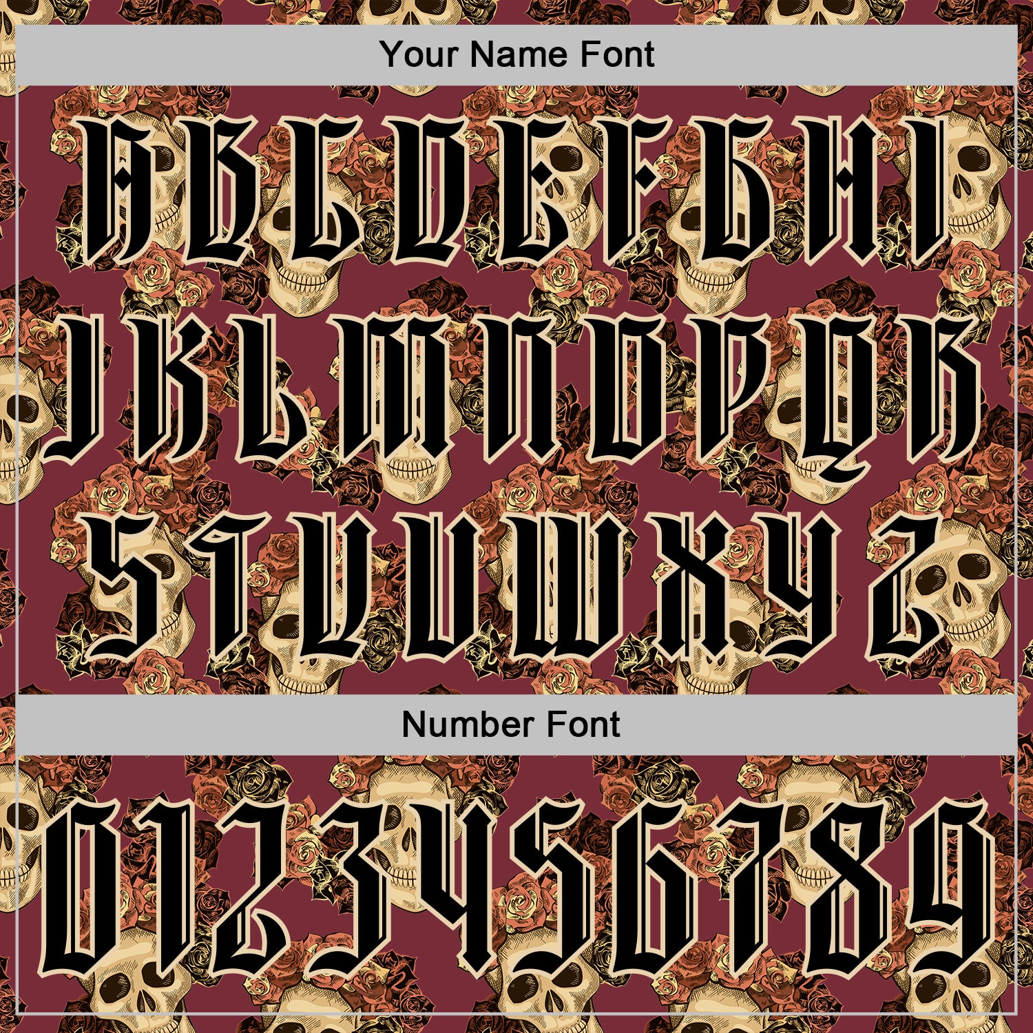 Custom Burgundy Black-City Cream 3D Skull Roses Gothic Vintage Sports Pullover Sweatshirt Hoodie