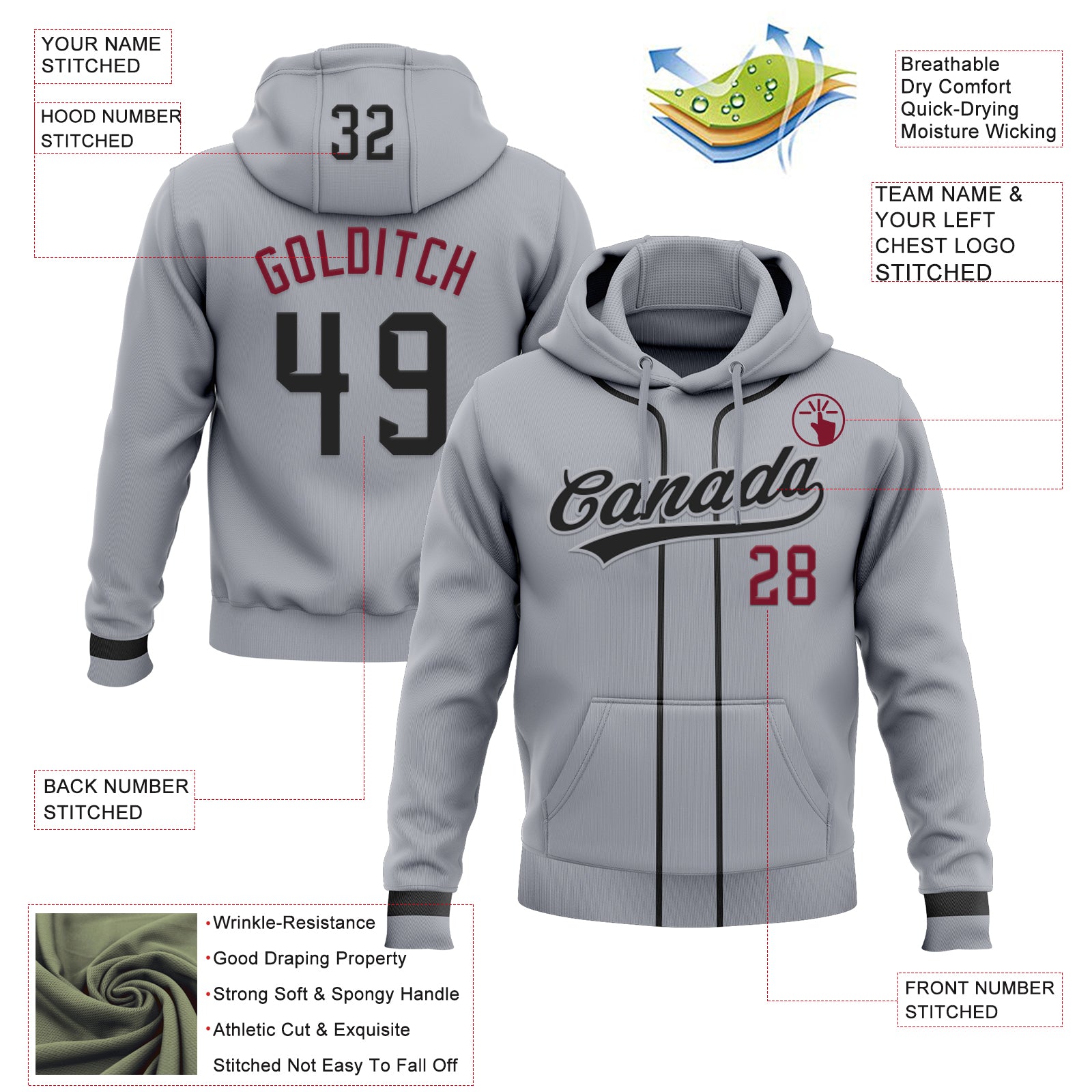 Custom Stitched Gray Black-Crimson Baseball Pullover Sweatshirt Hoodie