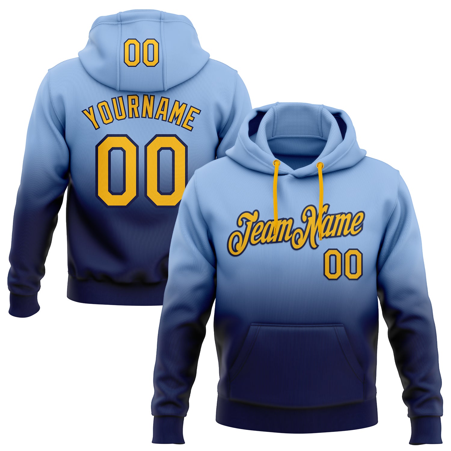 Custom Stitched Light Blue Gold-Navy Fade Fashion Sports Pullover Sweatshirt Hoodie