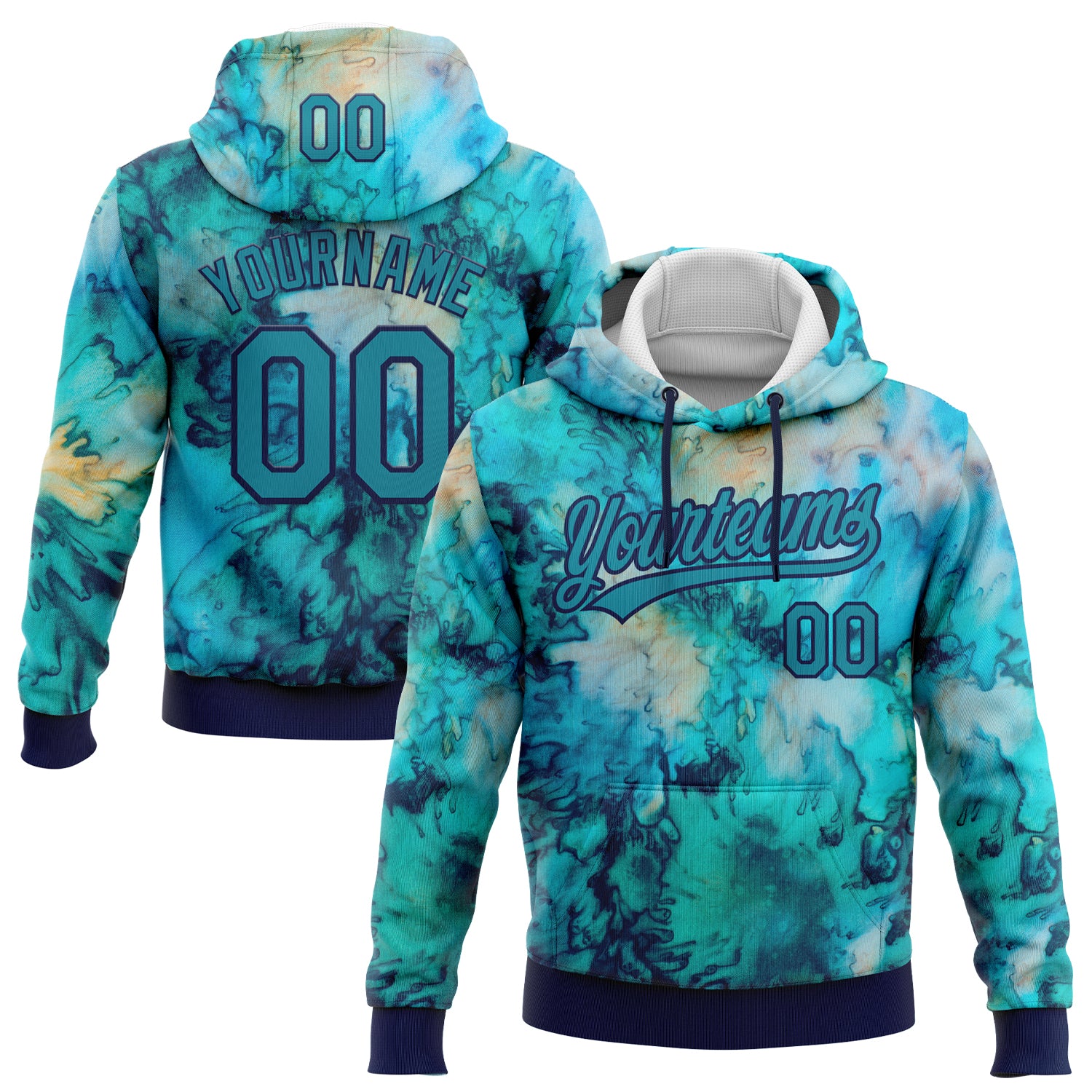 Custom Stitched Tie Dye Teal-Navy 3D Sports Pullover Sweatshirt Hoodie