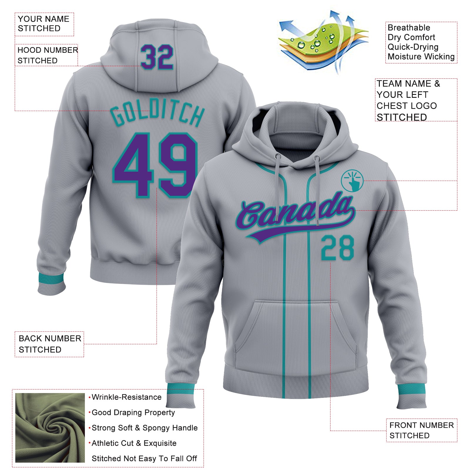 Custom Stitched Gray Purple-Teal Baseball Pullover Sweatshirt Hoodie