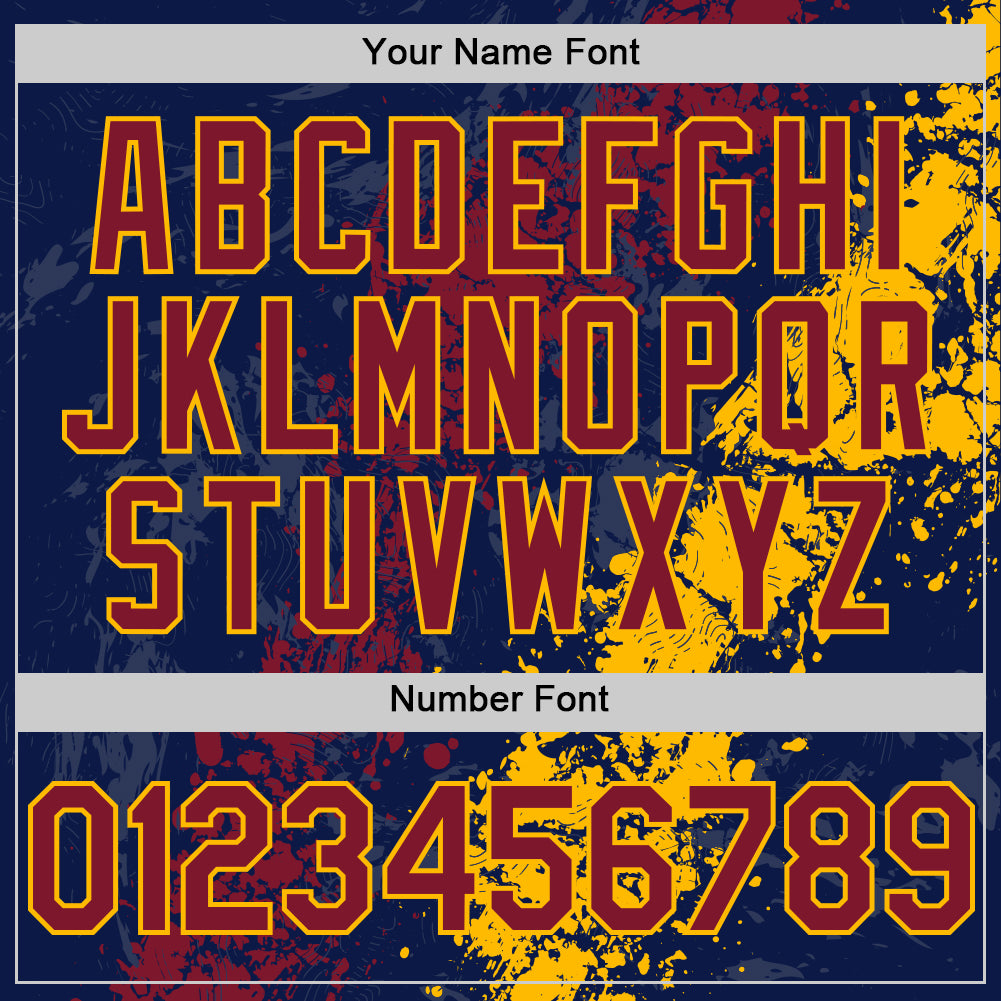 Custom Navy Crimson-Gold Splash Art 3D Pattern Design Bomber Full-Snap Varsity Letterman Hoodie Jacket