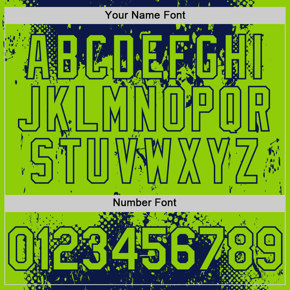 Custom Navy Neon Green Splash Art 3D Pattern Design Bomber Full-Snap Varsity Letterman Hoodie Jacket