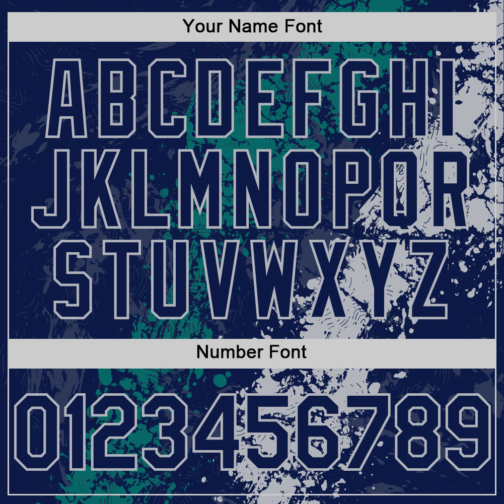 Custom Navy Teal-Gray Splash Art 3D Pattern Design Bomber Full-Snap Varsity Letterman Hoodie Jacket