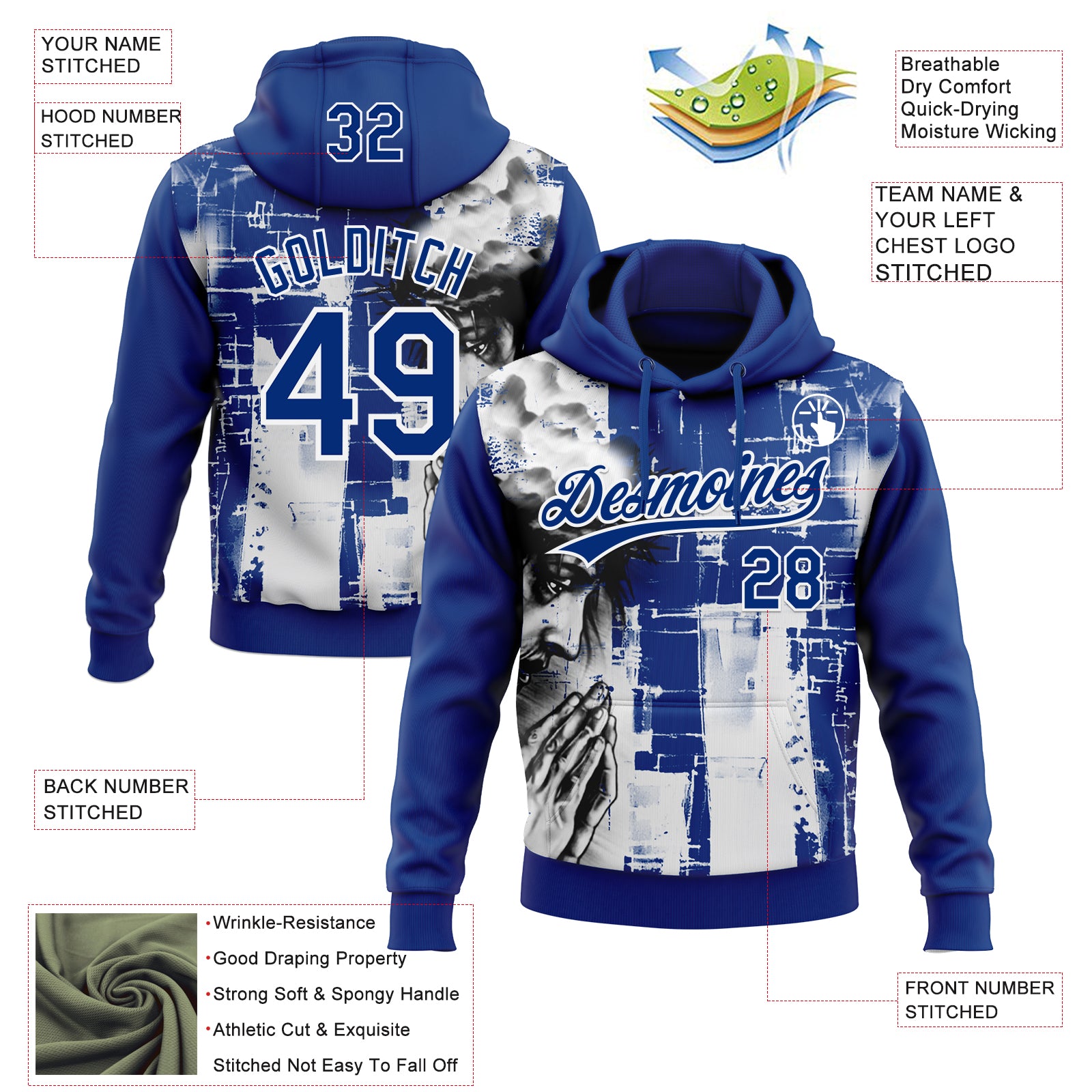 Custom Stitched Royal Black-White 3D Pattern Design Religion Jesus Christ Pullover Sweatshirt Hoodie
