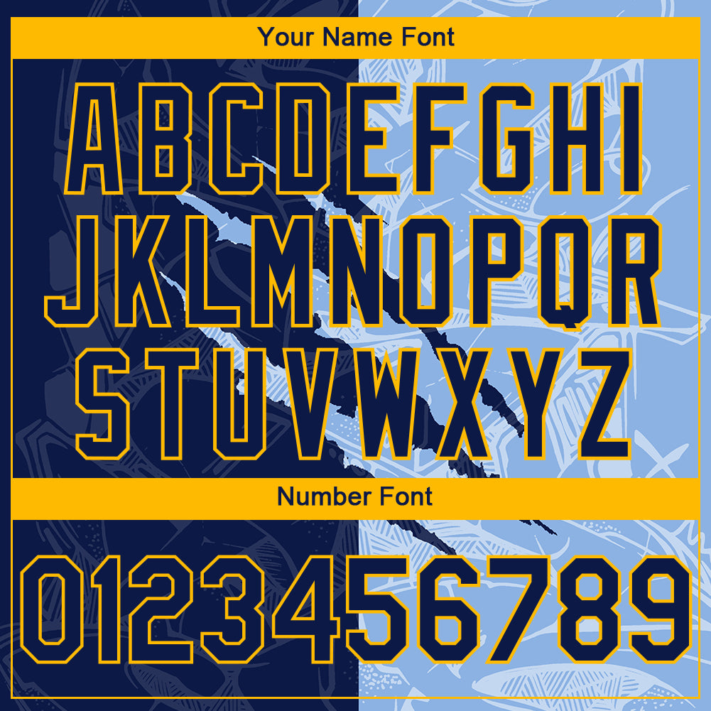 Custom Stitched Graffiti Pattern Navy Light Blue-Gold 3D Scratch Sports Pullover Sweatshirt Hoodie