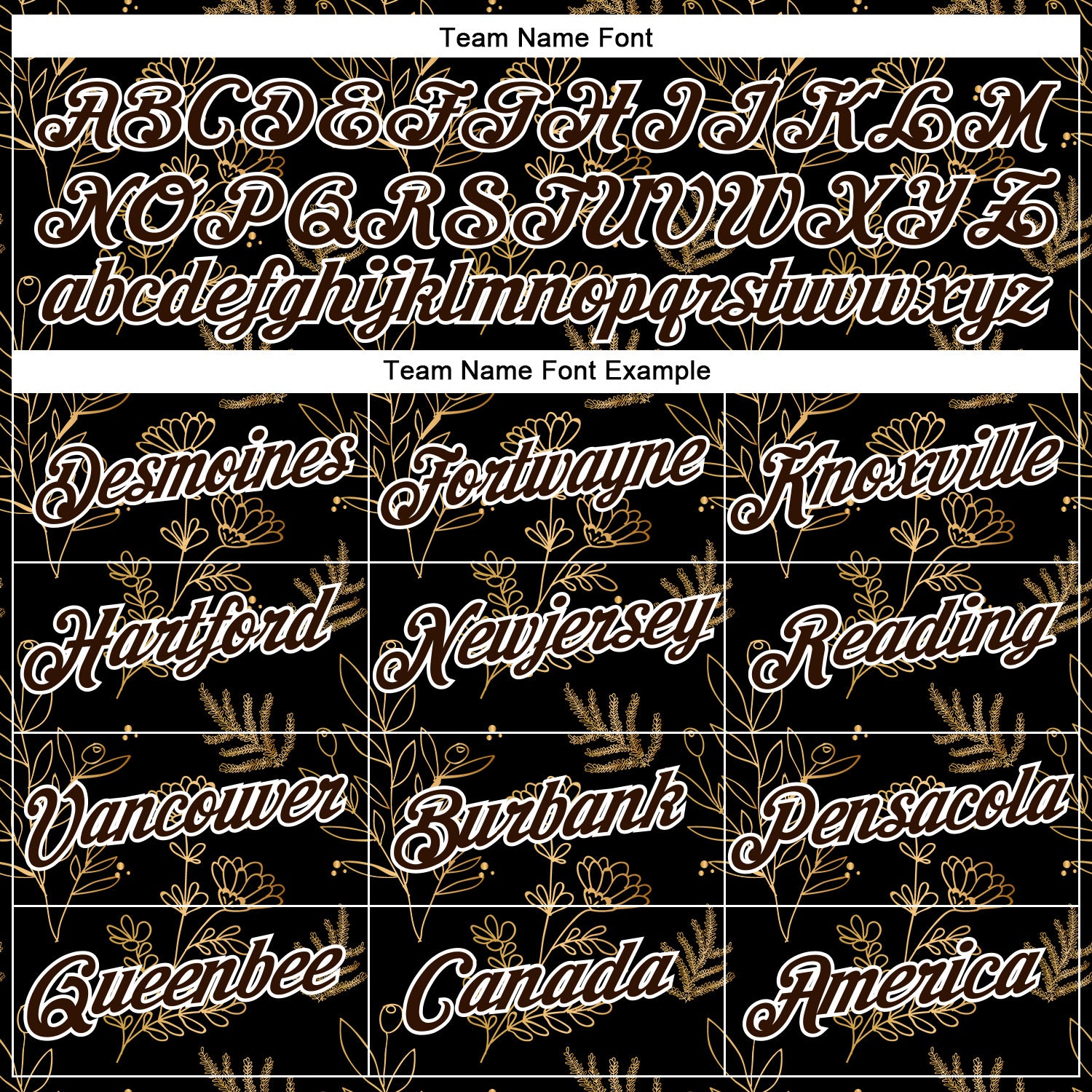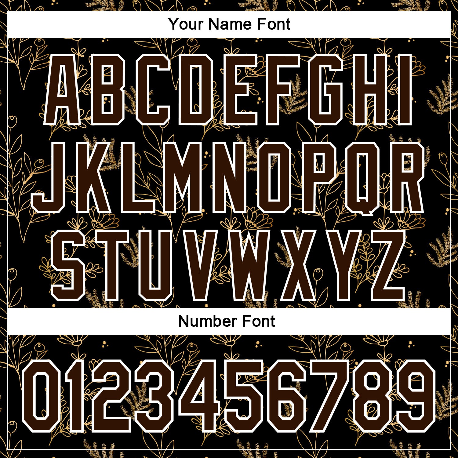 Custom Stitched Black Brown-White 3D Pattern Design Golden Subtle Floral Sports Pullover Sweatshirt Hoodie