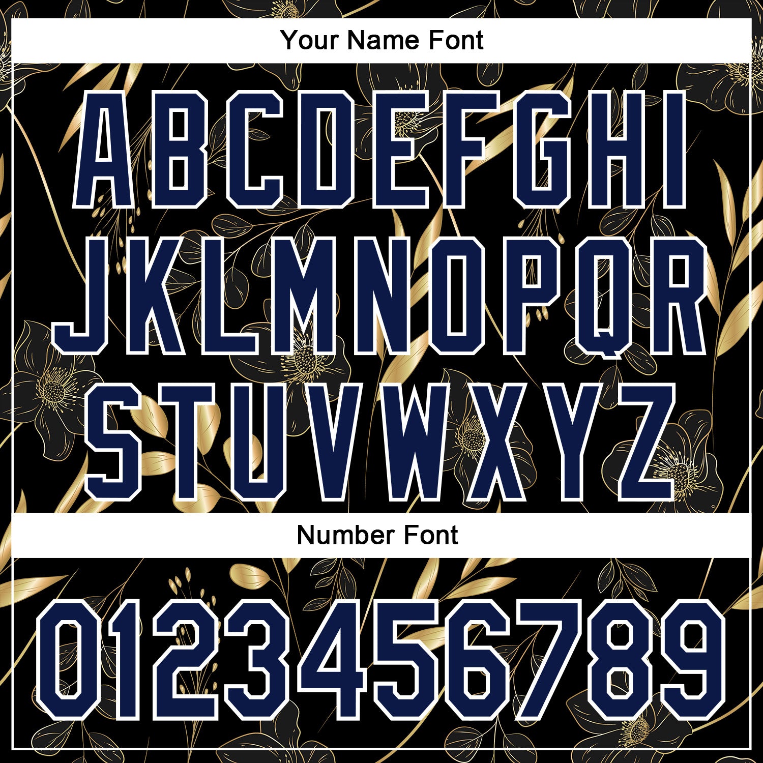 Custom Stitched Black Navy-White 3D Pattern Design Golden Subtle Floral Sports Pullover Sweatshirt Hoodie