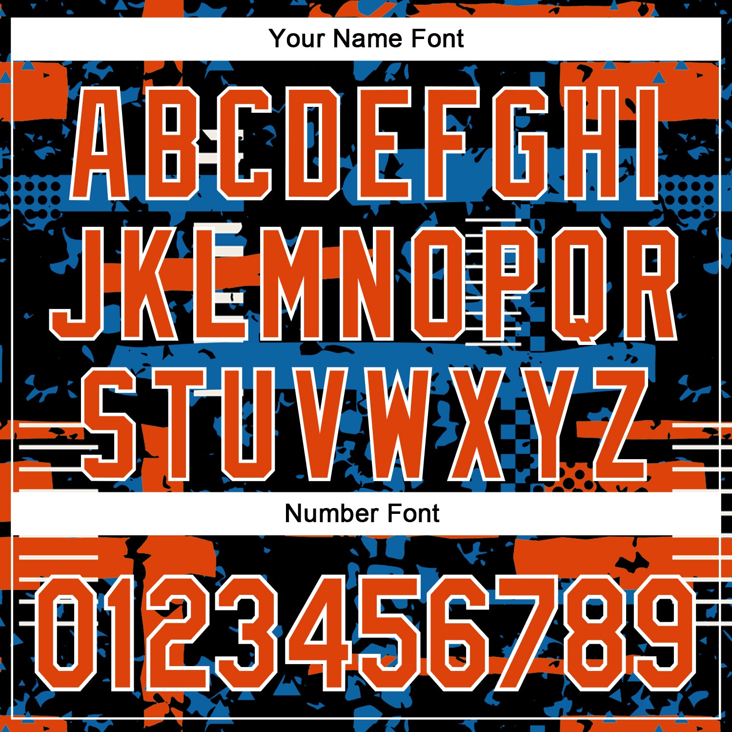 Custom Black Orange Blue-White Abstract Fragment Shape 3D Pattern Design Bomber Full-Snap Varsity Letterman Hoodie Jacket