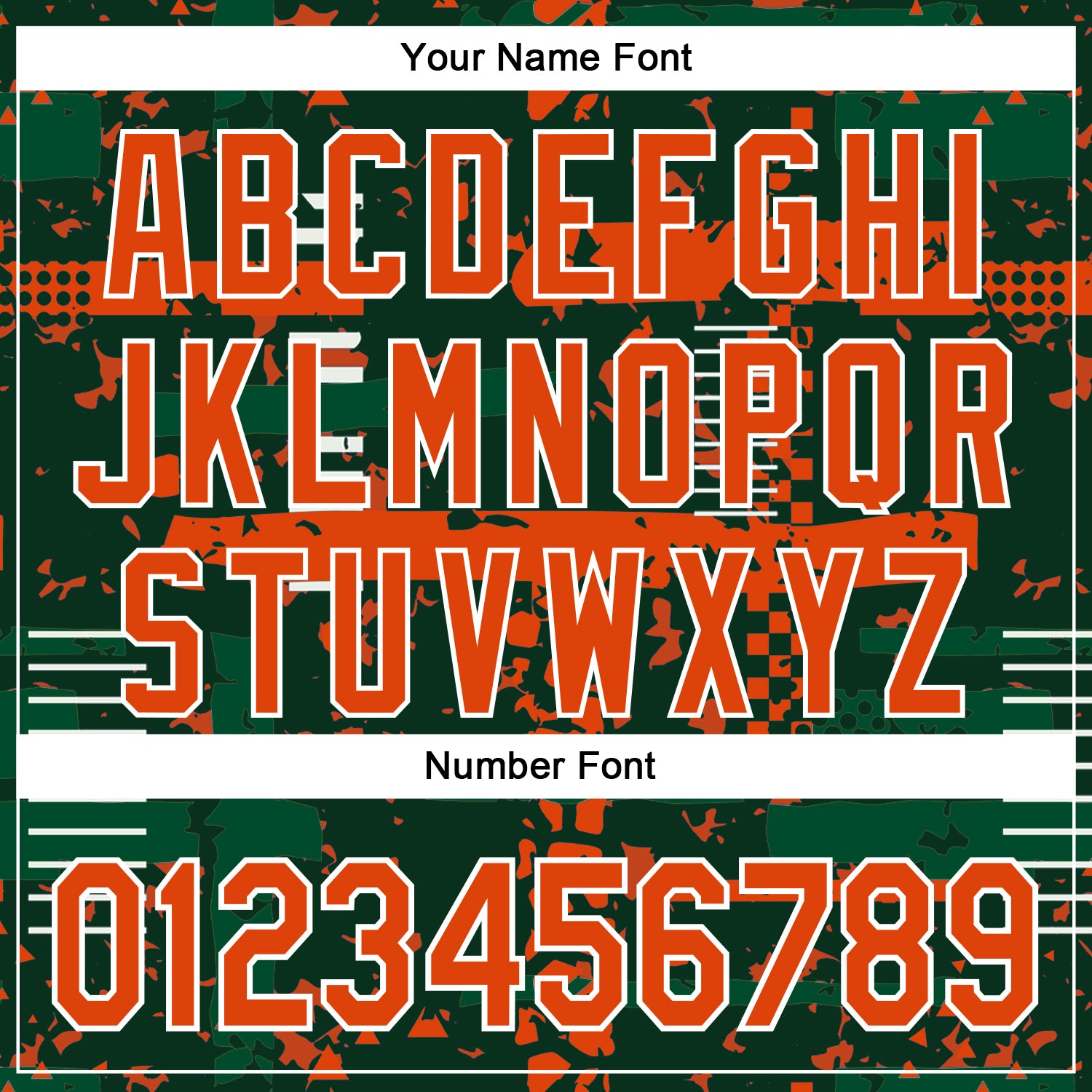 Custom Green Orange Kelly Green-White Abstract Fragment Shape 3D Pattern Design Bomber Full-Snap Varsity Letterman Hoodie Jacket