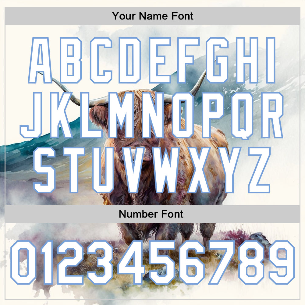 Custom White Light Blue A Bull In Tropical Exotic Jungle 3D Pattern Design Bomber Full-Snap Varsity Letterman Jacket
