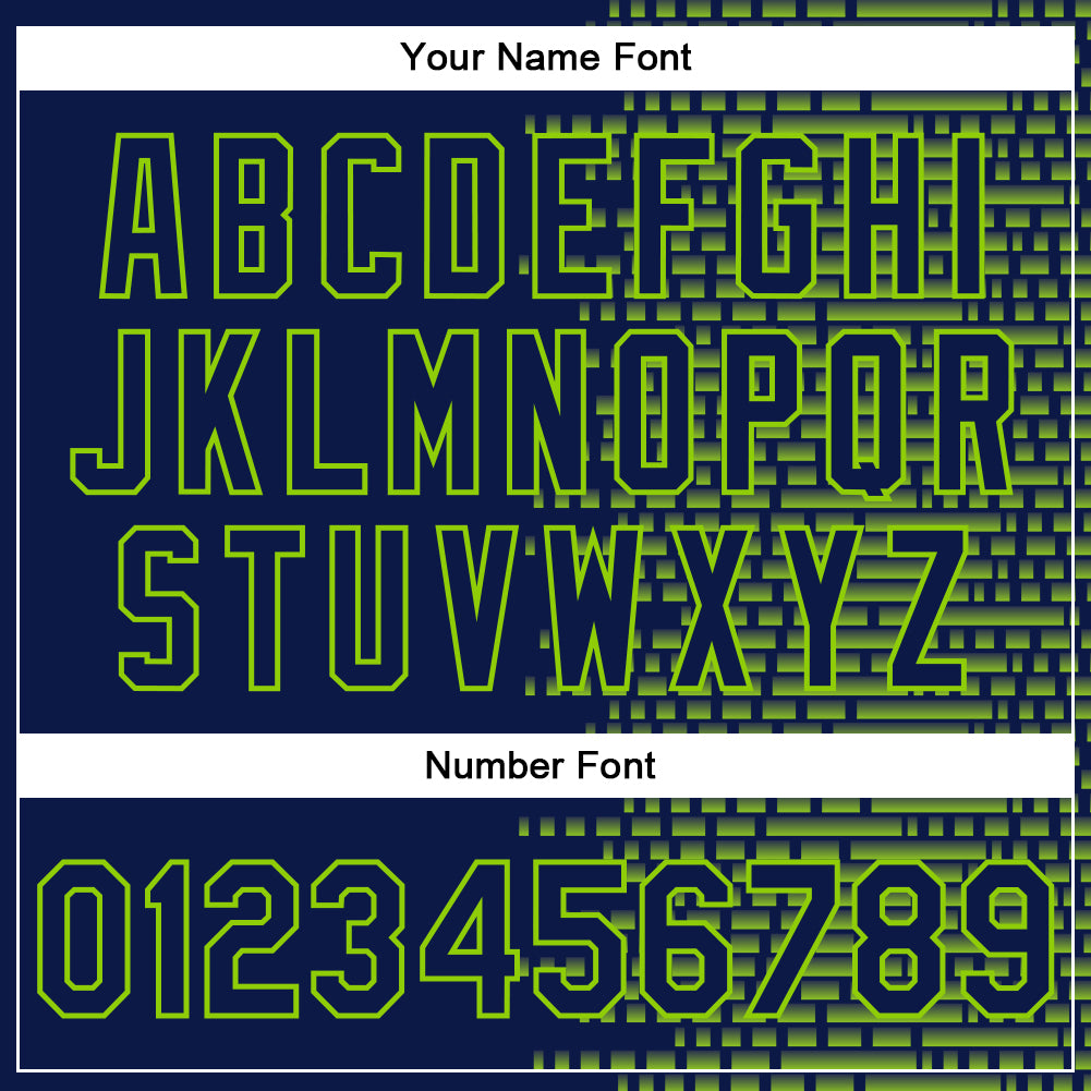 Custom Navy Neon Green Halftone 3D Pattern Design Bomber Full-Snap Varsity Letterman Jacket