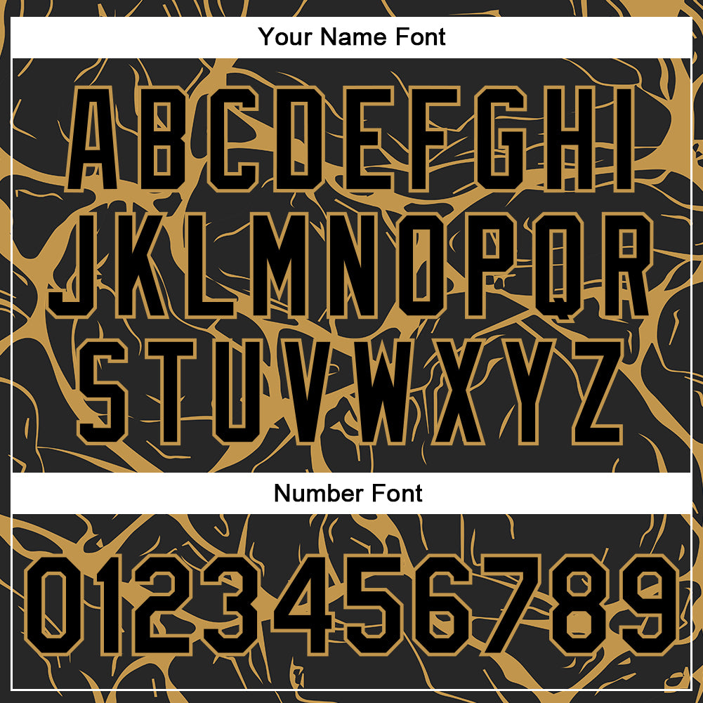 Custom Black Old Gold Abstract Network 3D Pattern Design Bomber Full-Snap Varsity Letterman Jacket