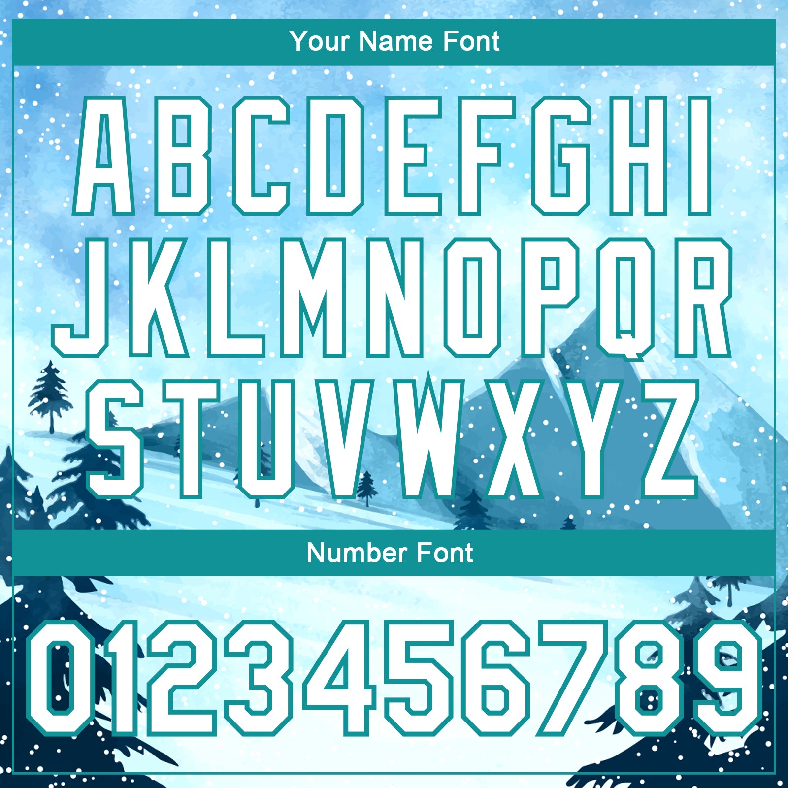 Custom Light Blue White-Teal Watercolor Winter Landscape With Snowy Trees 3D Pattern Design Bomber Full-Snap Varsity Letterman Jacket