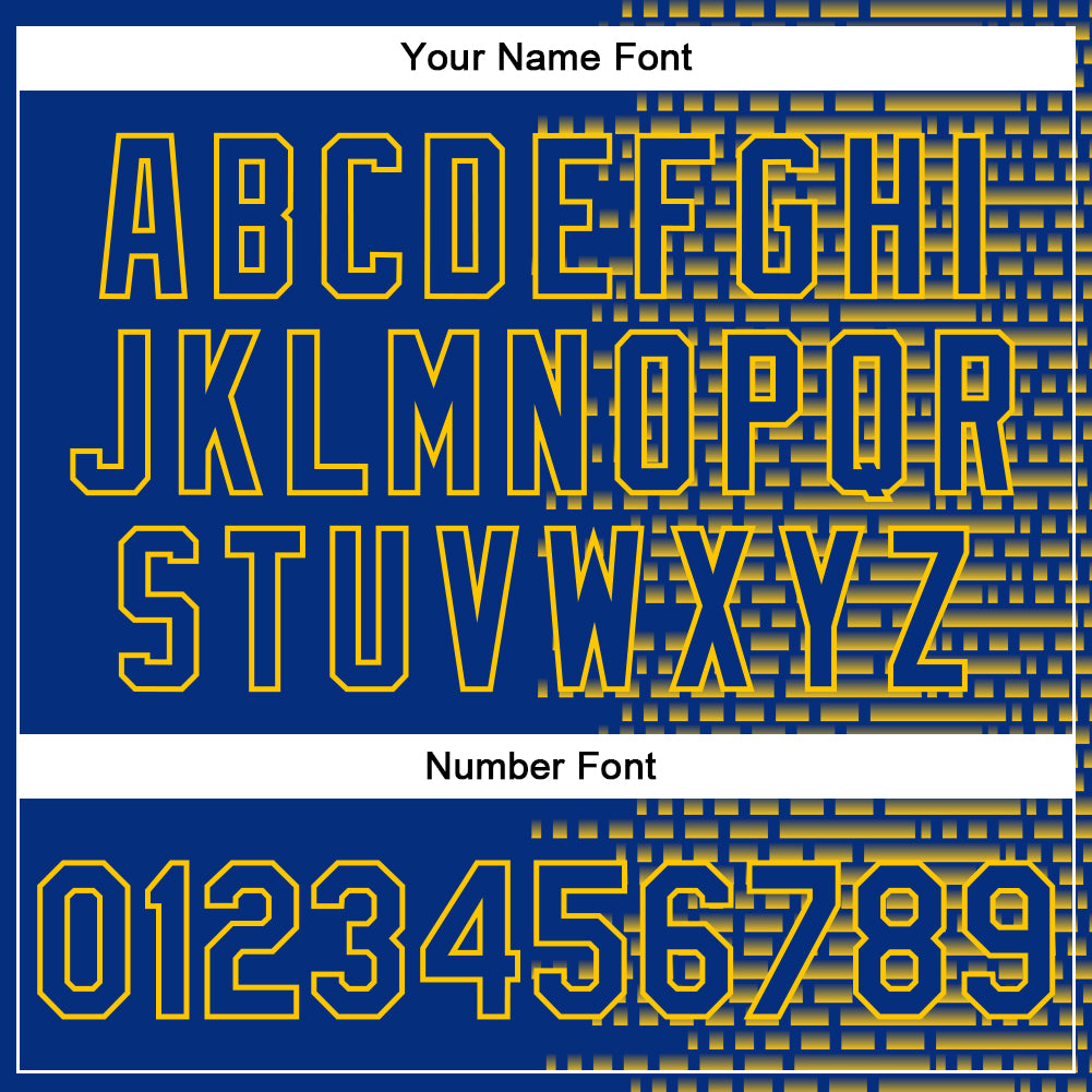 Custom Royal Yellow Halftone 3D Pattern Design Bomber Full-Snap Varsity Letterman Jacket