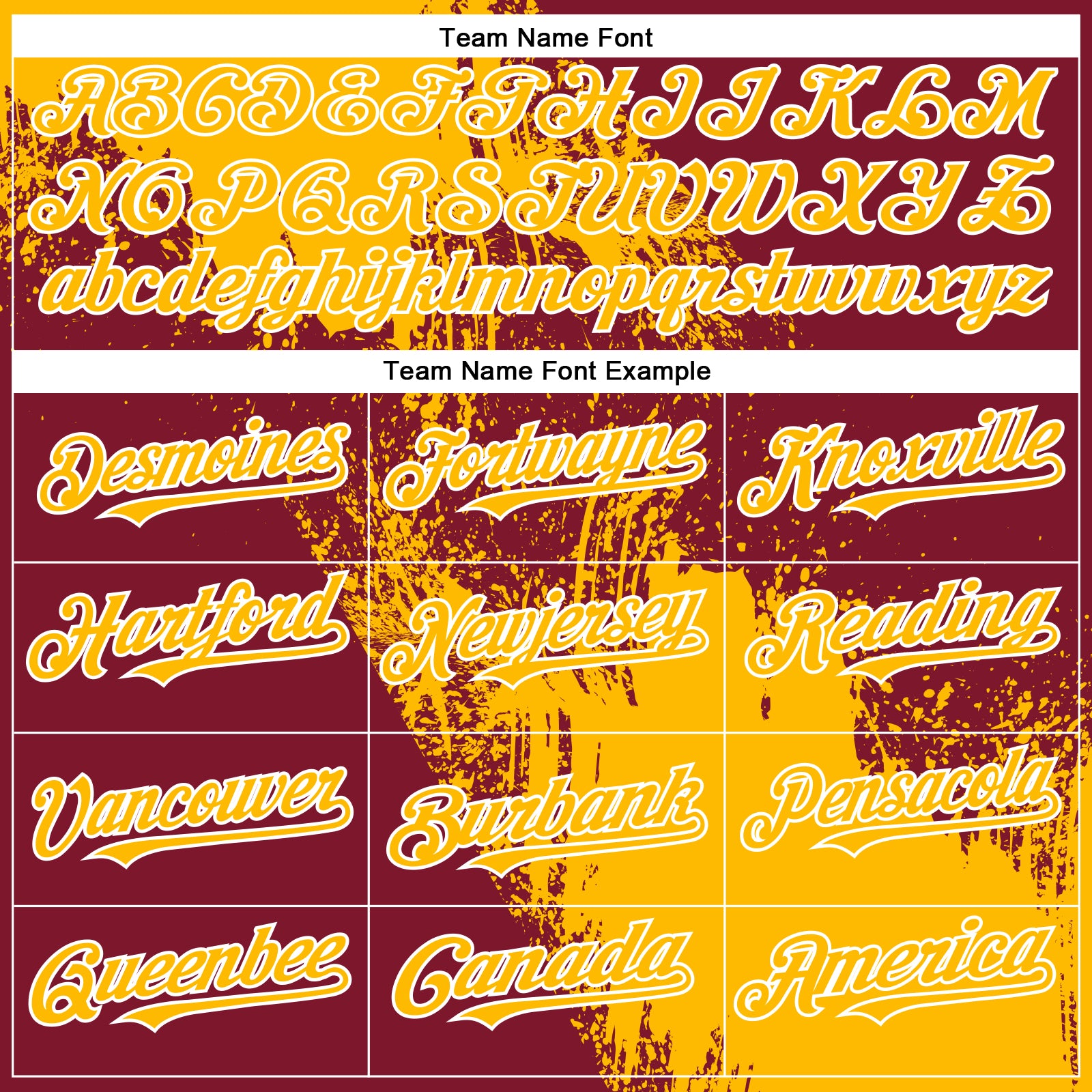 Custom Crimson Gold-White Abstract Brush Stroke 3D Pattern Design Bomber Full-Snap Varsity Letterman Hoodie Jacket