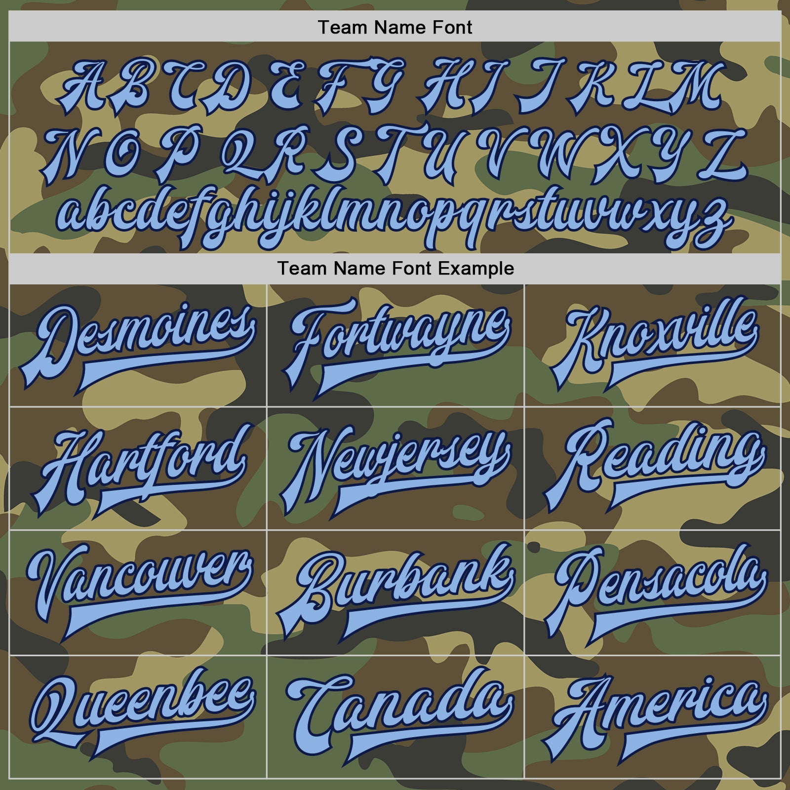 Custom Camo Light Blue-Navy Bomber Full-Snap Varsity Letterman Salute To Service Jacket
