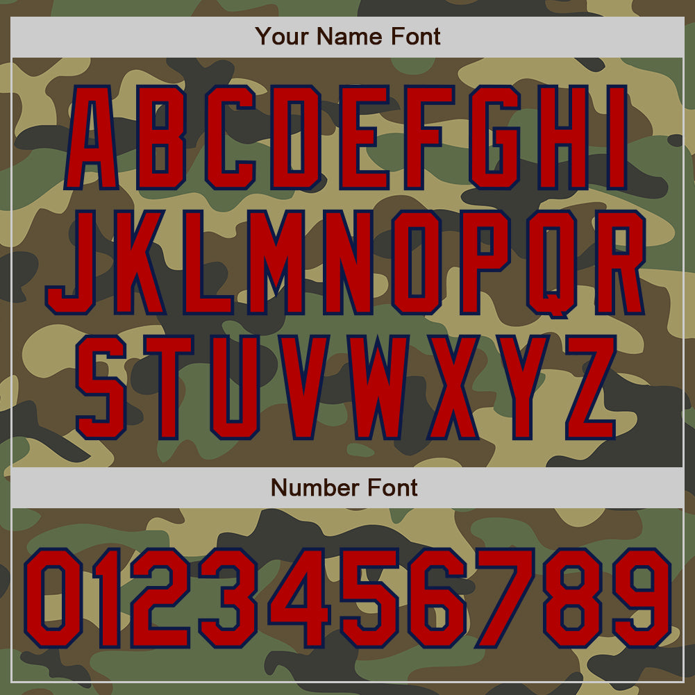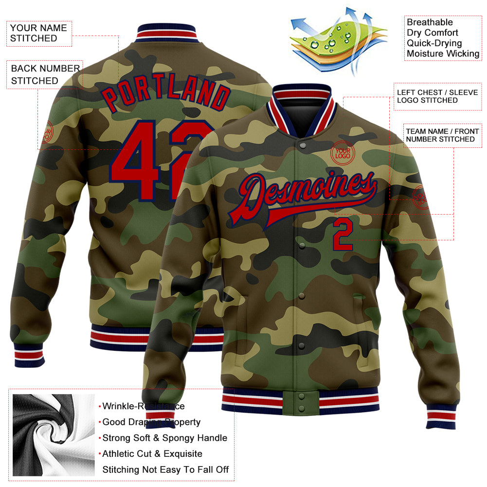 Custom Camo Red-Navy Bomber Full-Snap Varsity Letterman Salute To Service Jacket