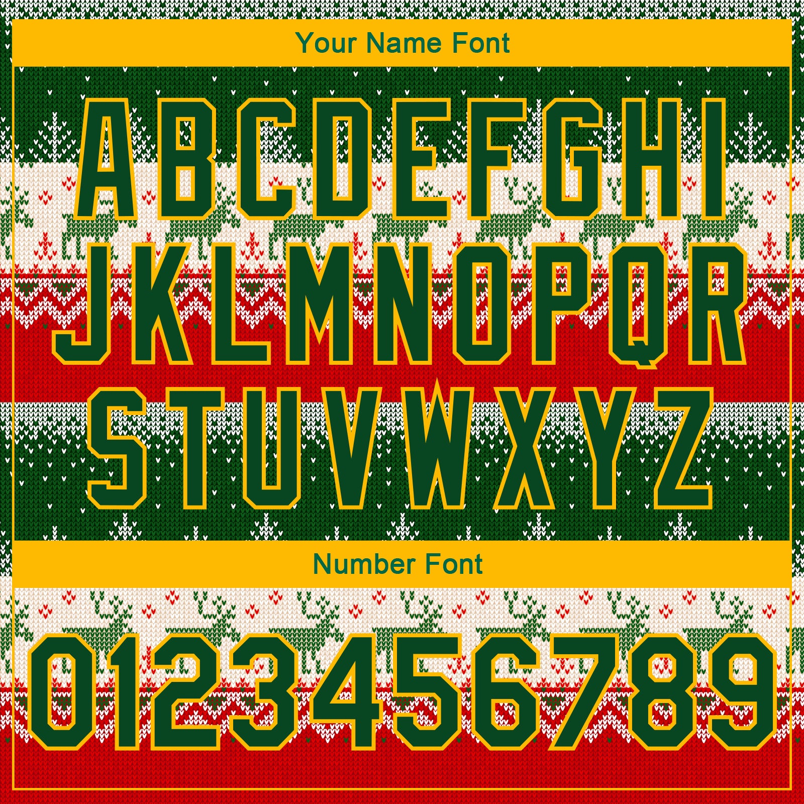 Custom Green Gold Christmas Reindeers 3D Bomber Full-Snap Varsity Letterman Jacket