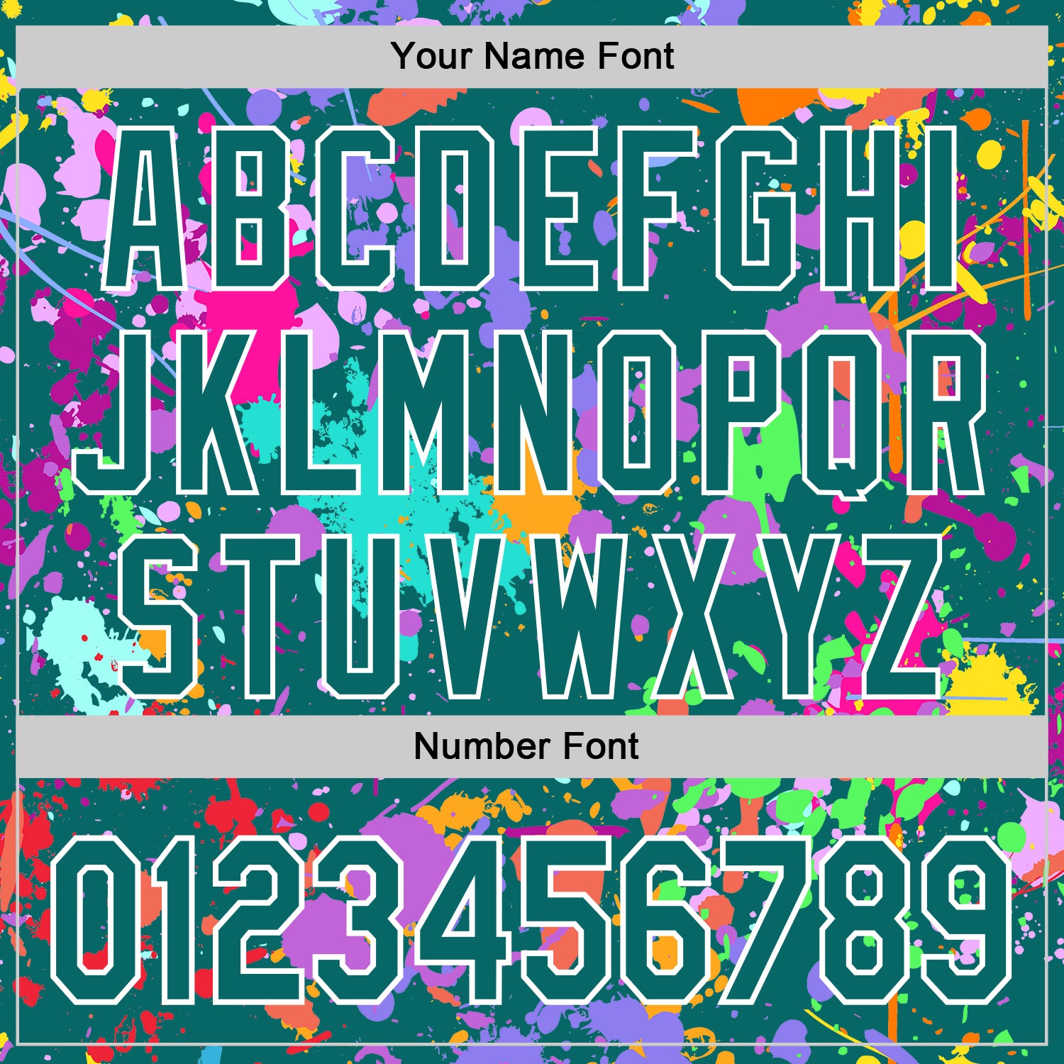 Custom Graffiti Pattern Teal-White Splash Bomber Full-Snap Varsity Letterman Hoodie Jacket