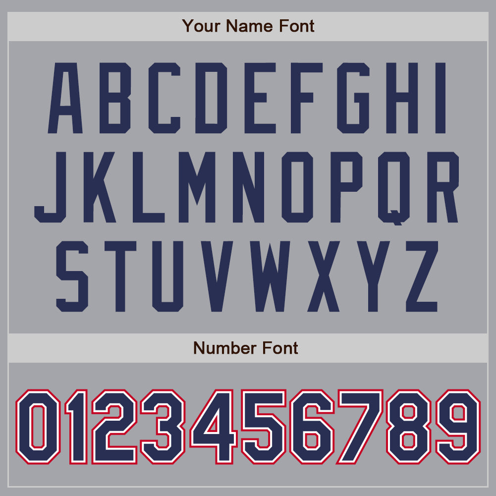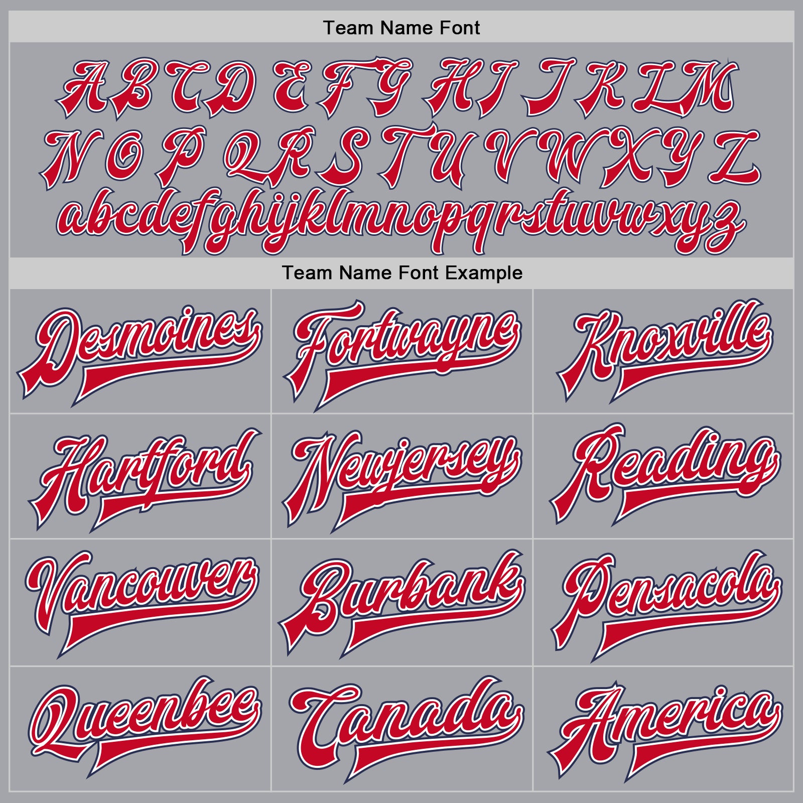 Custom Gray Navy White-Red Bomber Full-Snap Varsity Letterman Jacket