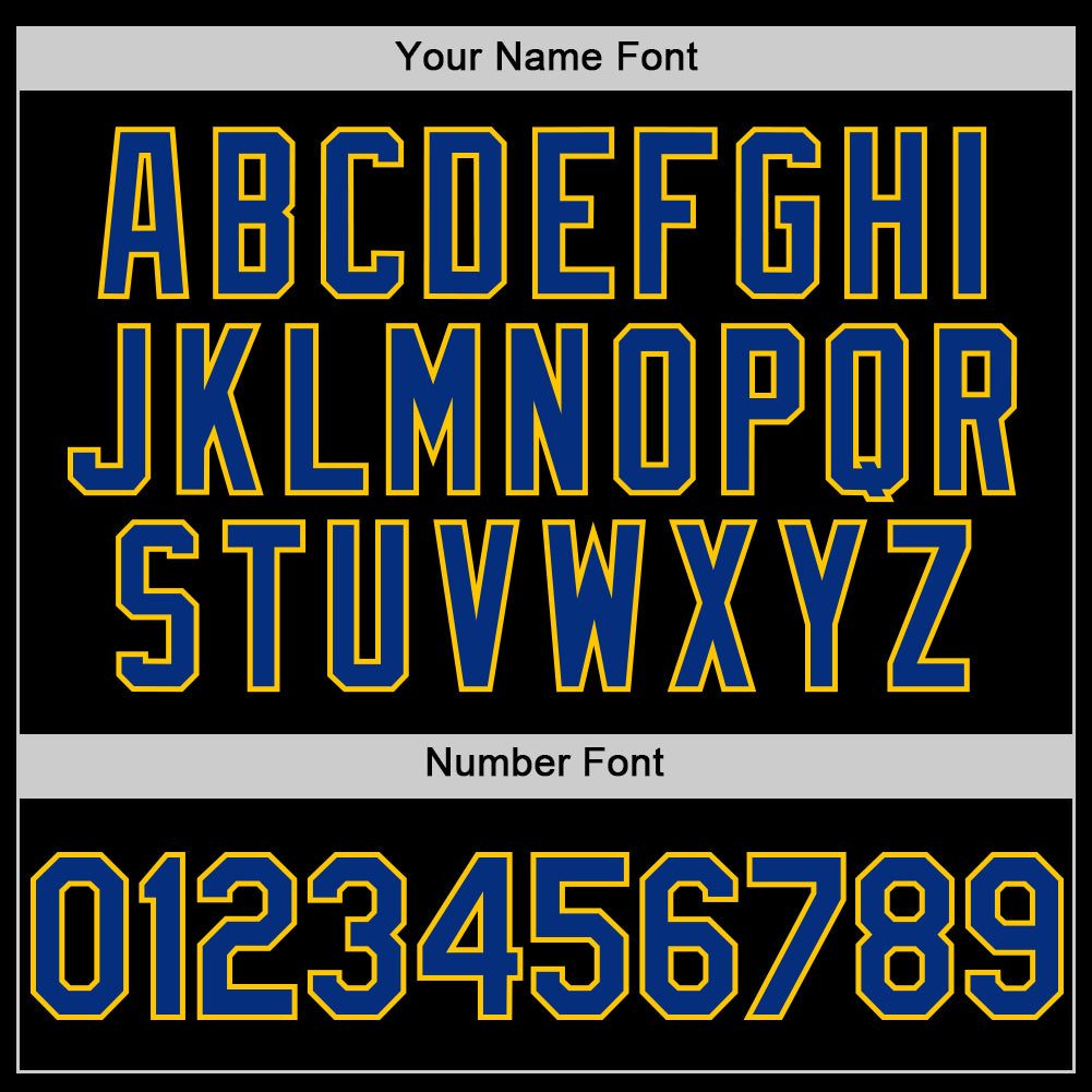 Custom Black Royal-Yellow Bomber Full-Snap Varsity Letterman Hoodie Jacket