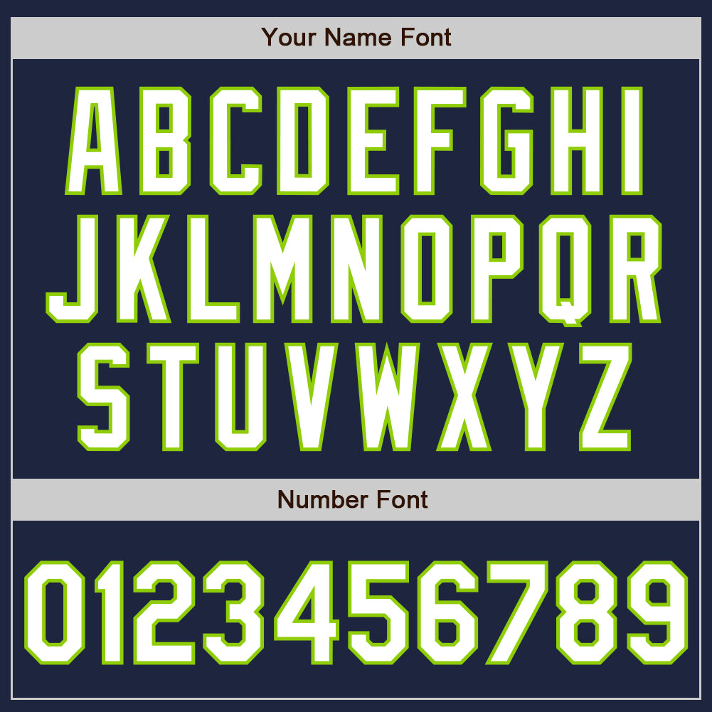 Custom Navy White-Neon Green Bomber Full-Snap Varsity Letterman Jacket