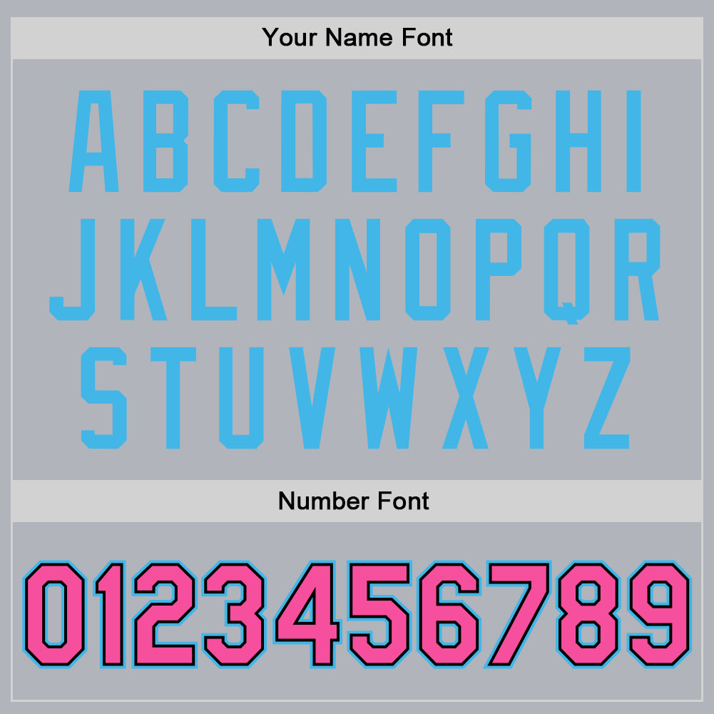 Custom Gray Pink Sky Blue-Black Bomber Full-Snap Varsity Faux Leather Letterman Jacket