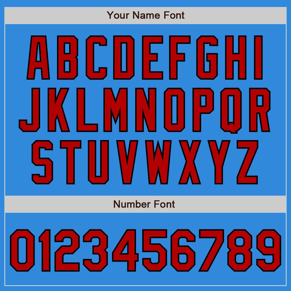Custom Powder Blue Red-Black Bomber Full-Snap Varsity Letterman Jacket