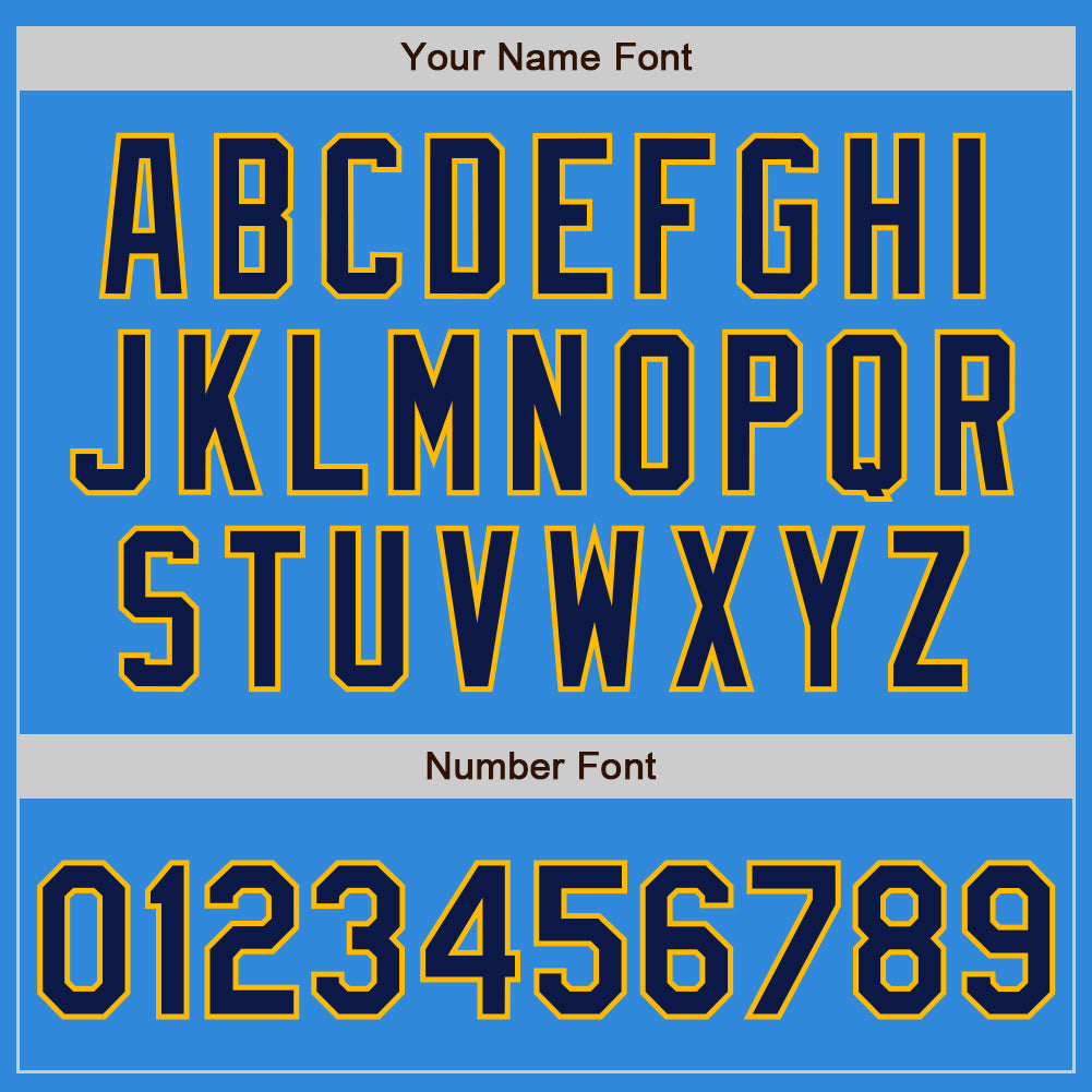 Custom Powder Blue Navy-Gold Bomber Full-Snap Varsity Letterman Jacket