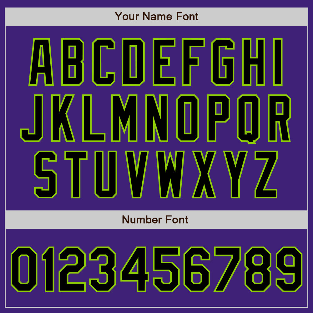 Custom Purple Black-Neon Green Bomber Varsity Letterman Zipper Jacket