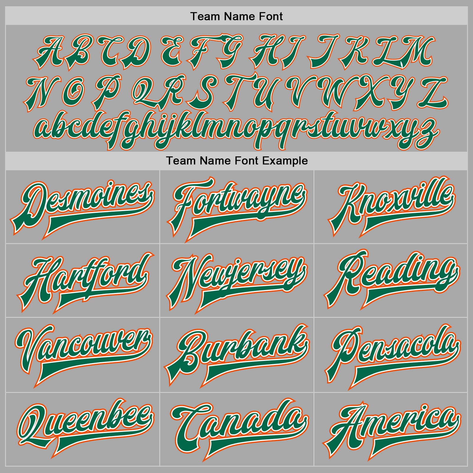 Custom Gray Kelly Green-Orange Bomber Full-Snap Varsity Letterman Two Tone Jacket