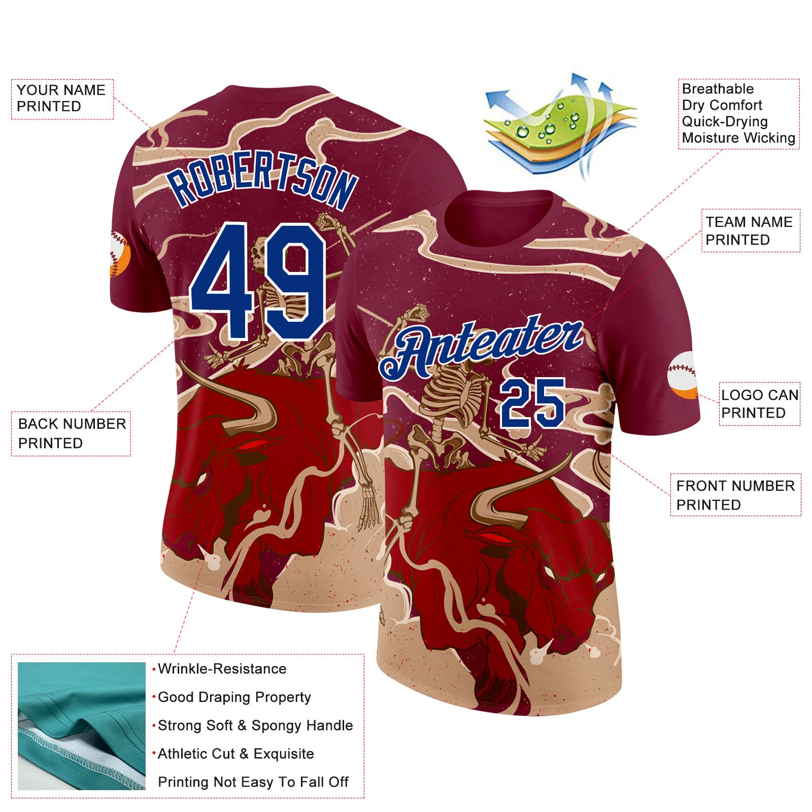 Custom Crimson Royal-White Spain Skeleton OX Performance T-Shirt