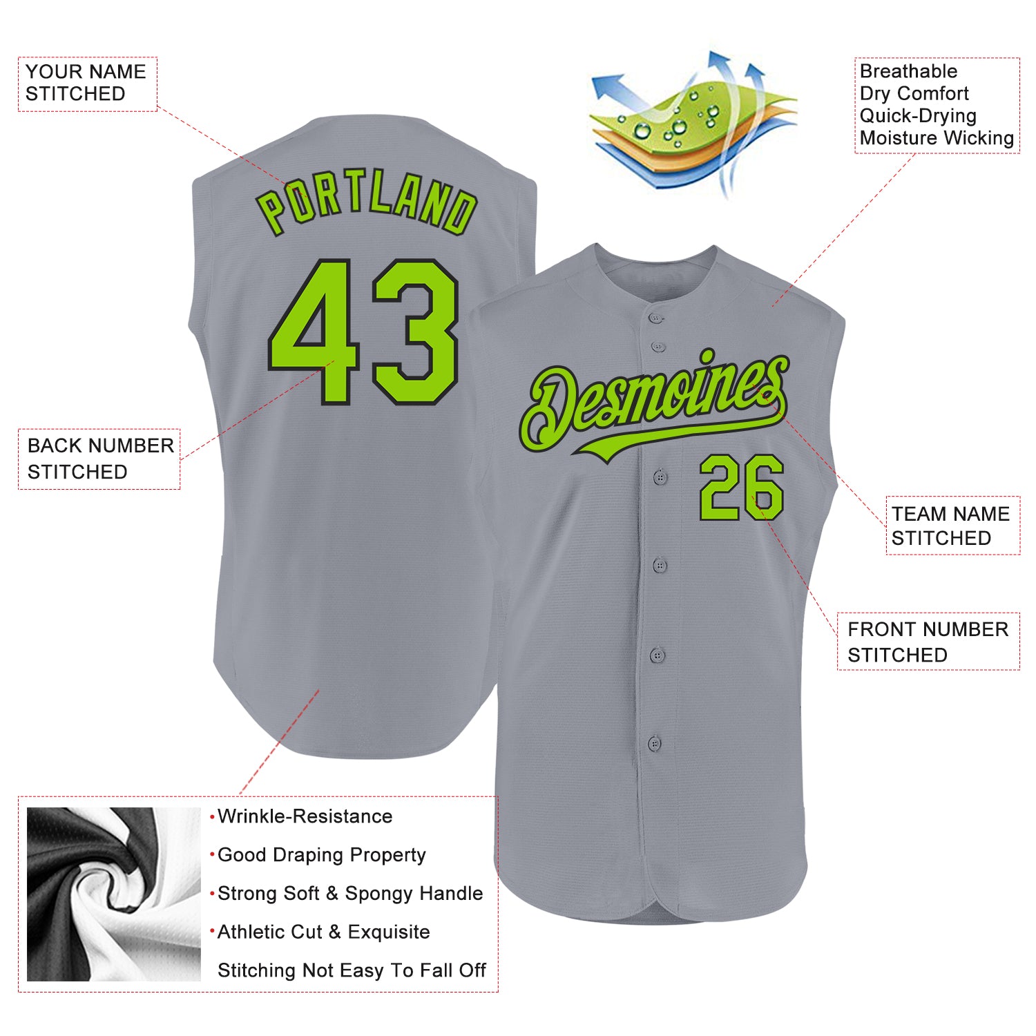 Custom Gray Neon Green-Black Authentic Sleeveless Baseball Jersey