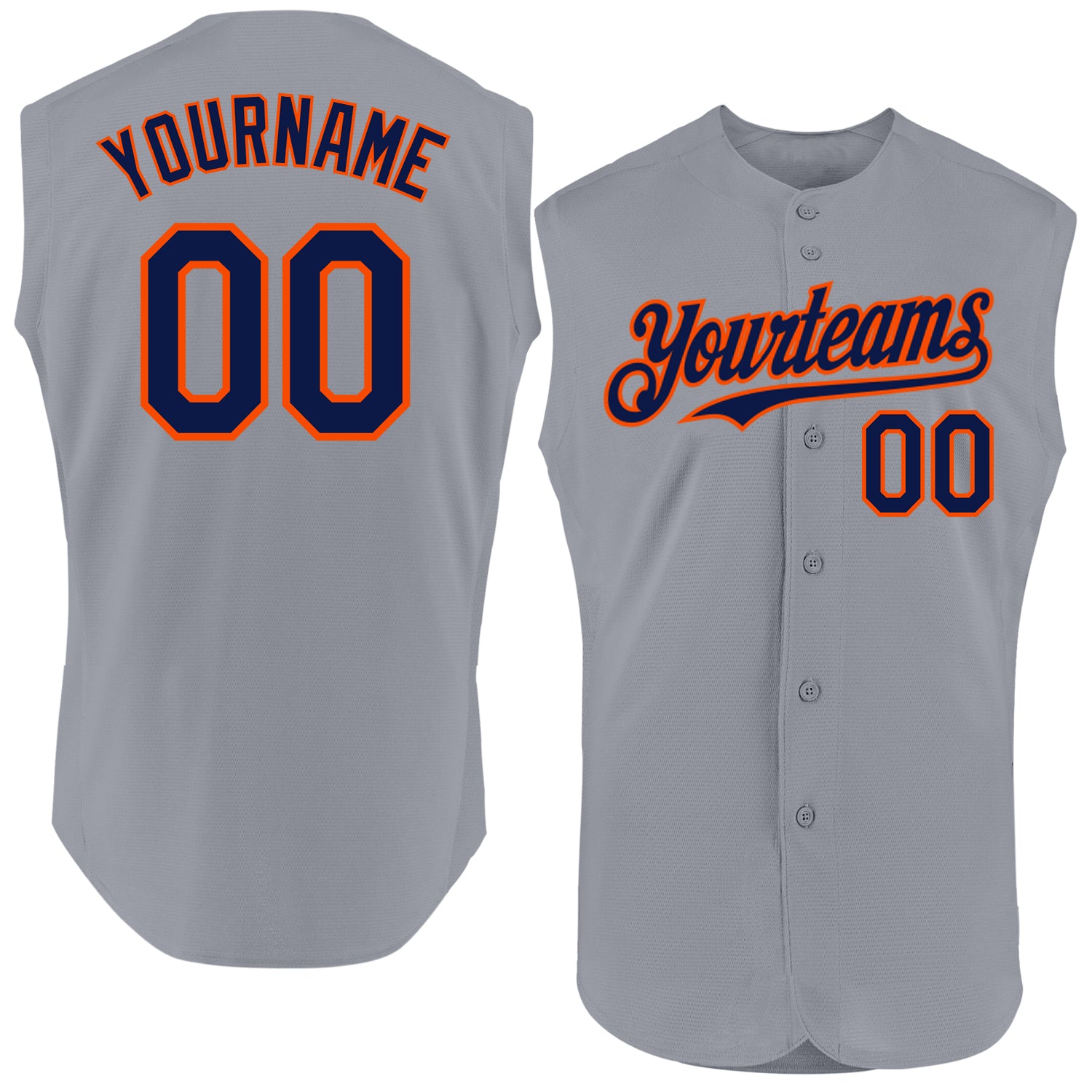 Custom Gray Navy-Orange Authentic Sleeveless Baseball Jersey