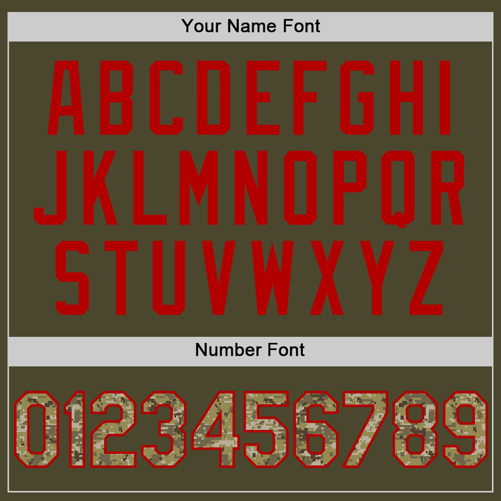 Custom Olive Camo-Red Authentic Sleeveless Salute To Service Baseball Jersey